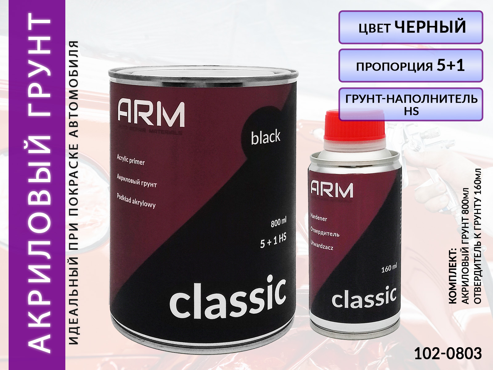 Грунт 5+1 черный акриловый с отвердителем CLASSIC ARM (0,8л+0,16л)
