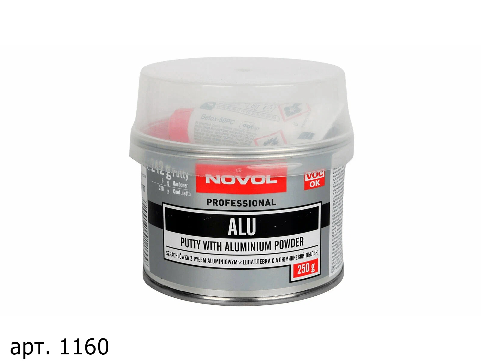 Наполняющая шпатлевка ALU NOVOL (1160) с добавкой алюминиевой пыли, которая увеличивает её устойчивость к повышенной температуре и гарантирует превосходную адгезию. Обладает меньшей усадкой по сравнению с типичными шпатлёвками, а также высокой эластичностью, благодаря чему применяется для выравнивания больших по площади неровностей.
