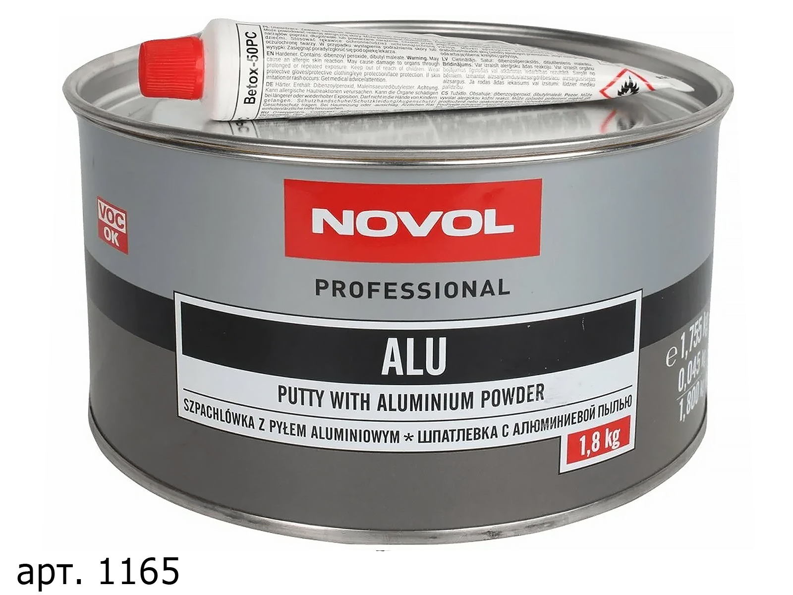 Наполняющая шпатлевка ALU NOVOL (1160) с добавкой алюминиевой пыли, которая увеличивает её устойчивость к повышенной температуре и гарантирует превосходную адгезию. Обладает меньшей усадкой по сравнению с типичными шпатлёвками, а также высокой эластичностью, благодаря чему применяется для выравнивания больших по площади неровностей.