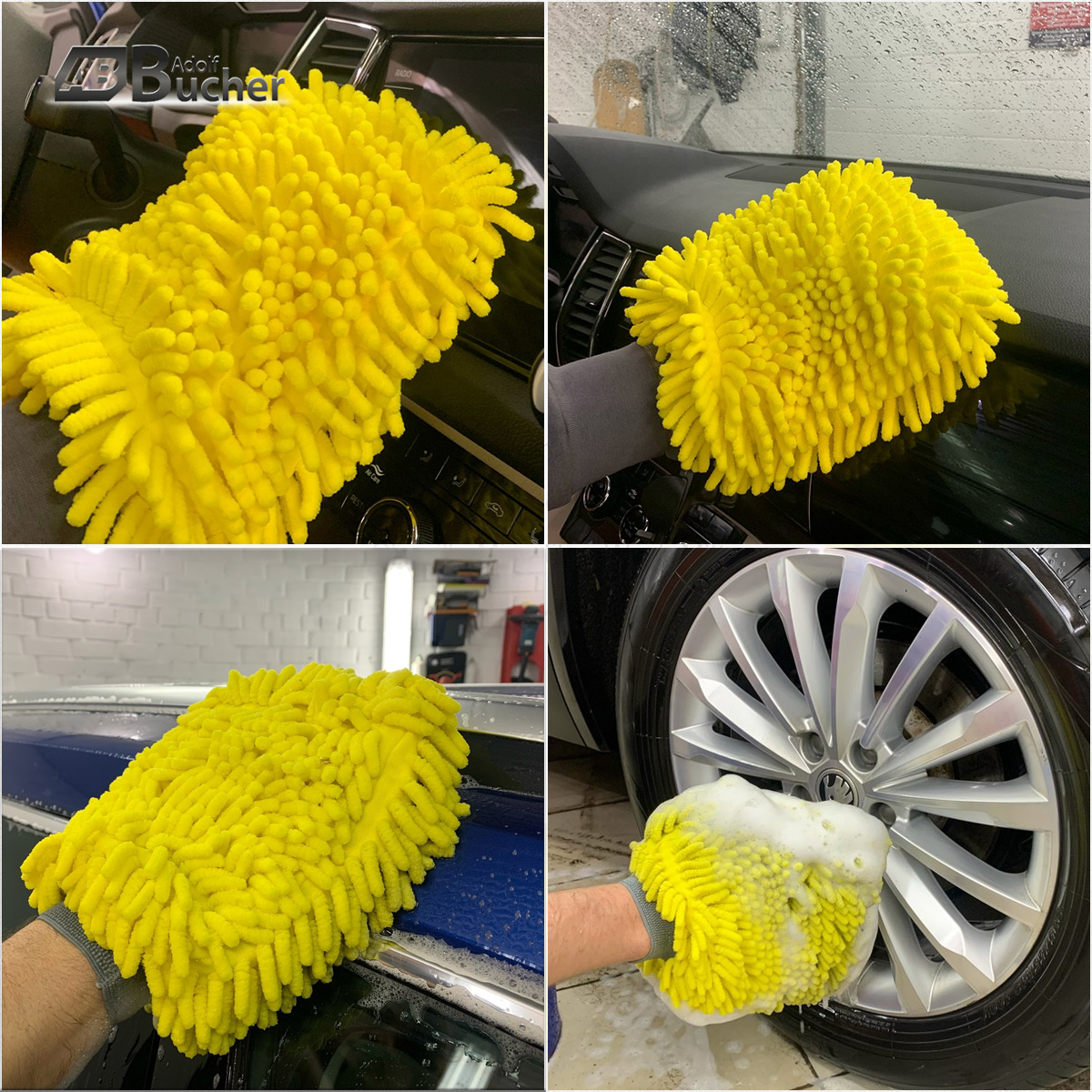 Нежная к покрытию, эффективная для грязи микрофибровая варежка Adolf Bucher изготовлена из экстра плюшевой микрофибры рекордно высокой плотности 1400 гр/м2, которая набирает огромное количество моечного раствора, чтобы вы могли покрыть любой автомобиль густой пеной для максимально качественной мойки без царапин и повреждений на лакокрасочном покрытии.