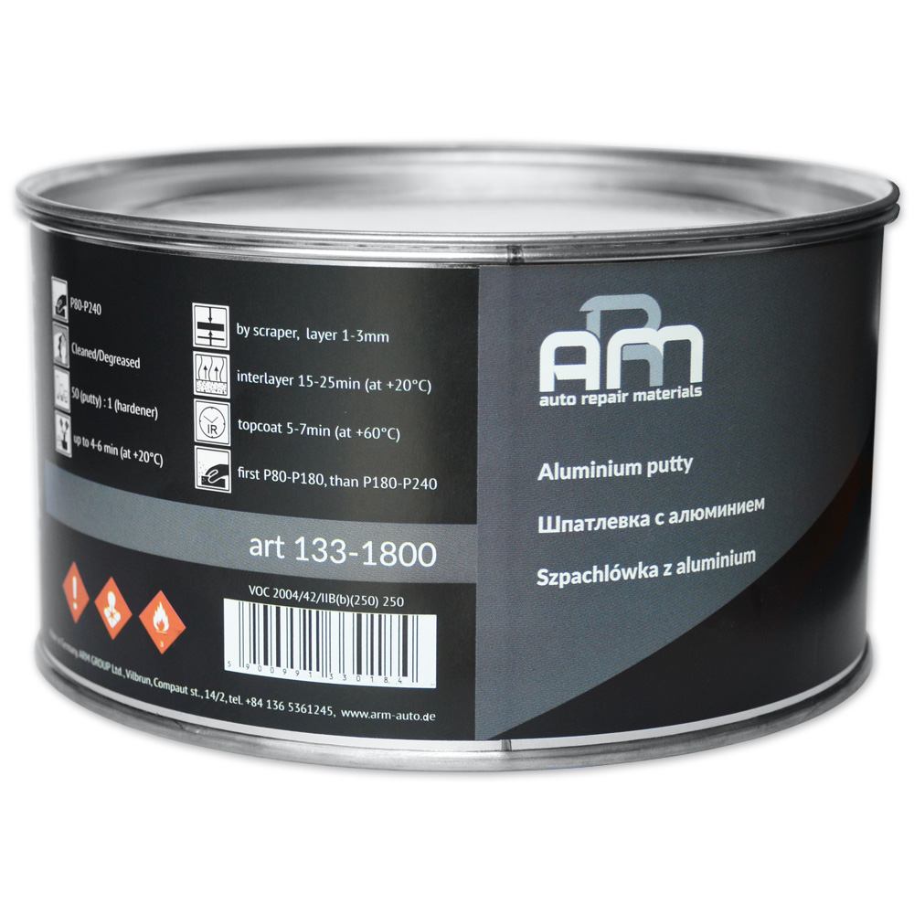Шпатлевка METALLIC ARM (133-1800) предназначена для выравнивания поверхностей при кузовном ремонте транспортных средств или любых других металлических элементов. Обладает отличной стойкостью к механическим нагрузкам и высоким температурам, превосходной адгезией к металлу и алюминию. Минимальная усадка и высокая эластичность позволяют использовать шпатлевку для заполнения больших неровностей.