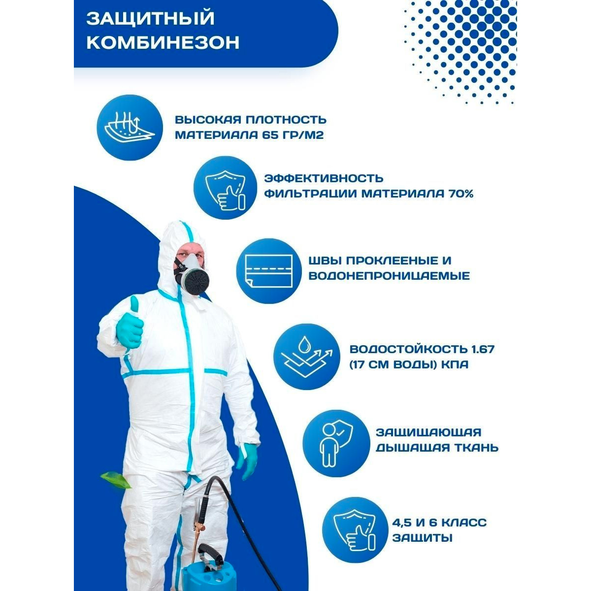 - защищающая дышащая ткань, не позволит вам чувствовать себя не комфортно в этом защитном комбинезоне.