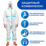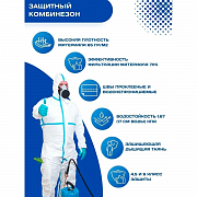 - эластичный капюшон, манжета и эластичный пояс, помогут плотно зафиксировать комбинезон в данных участках тела. Для препятствия проникновения вредных веществ и пыли, так же помогут комфортно носить данный комбинезон.