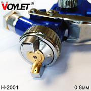 Миникраскопульт H2001 VOYLET с верхним бачком 125мл и дюзой 0,8мм - лёгкий, удобный, надёжный покрасочный краскопульт системы HVLP (обеспечивает меньшее давление в воздушной головке и гарантирует более мягкую и легкую окраску, а также низкий уровень образования окрасочного тумана) с регулировками факела, подачи материала и воздуха. H2001(H-2000) - это уменьшенная в размерах копия краскопульта H827. H-2000 предназначен для покраски небольших поверхностей лакокрасочными материалами, незаменим в локальном ремонте по системе "без перехода".