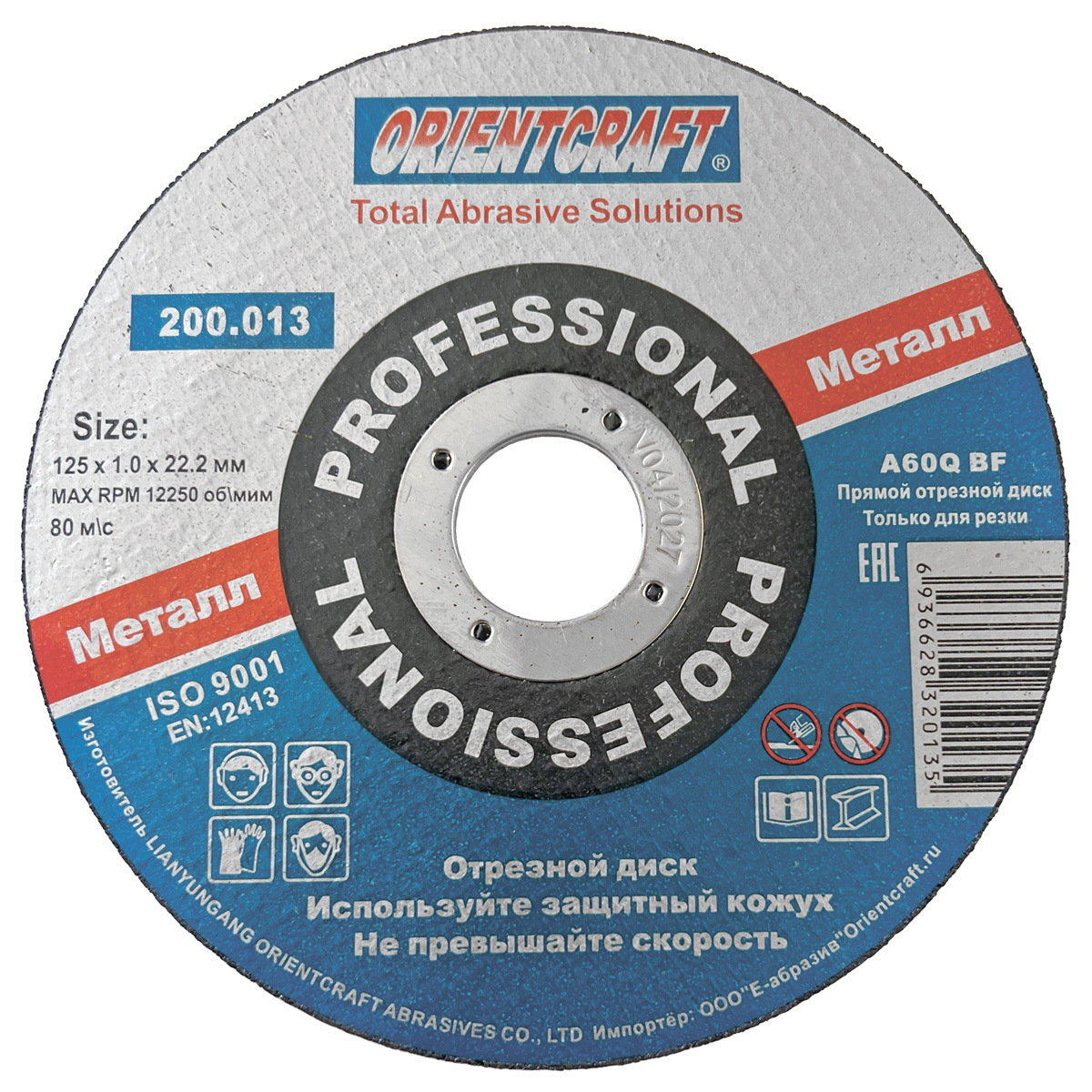 Диск отрезной 125х1,0х22.2мм по металлу ORIENTCRAFT