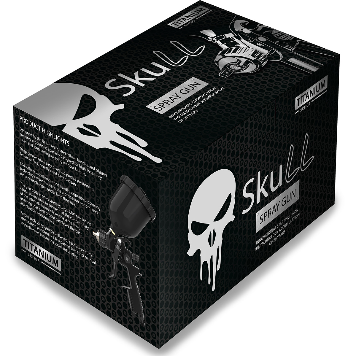 Краскопульт серии TITANIUM от SKULL (20114) c технологией RRP подходит для маляров, которые привыкли к высокоэффективному распылению. Разработанный итальянской командой дизайнеров краскопульты эргономичны, удобны для регулярной работы, способствуют сохранению режима работы без усталости. Легкая регулировка, удобный хват с рельефом. Тефлоновая поверхность легко чистится. Сопло и игла из нержавеющей стали типа 304.