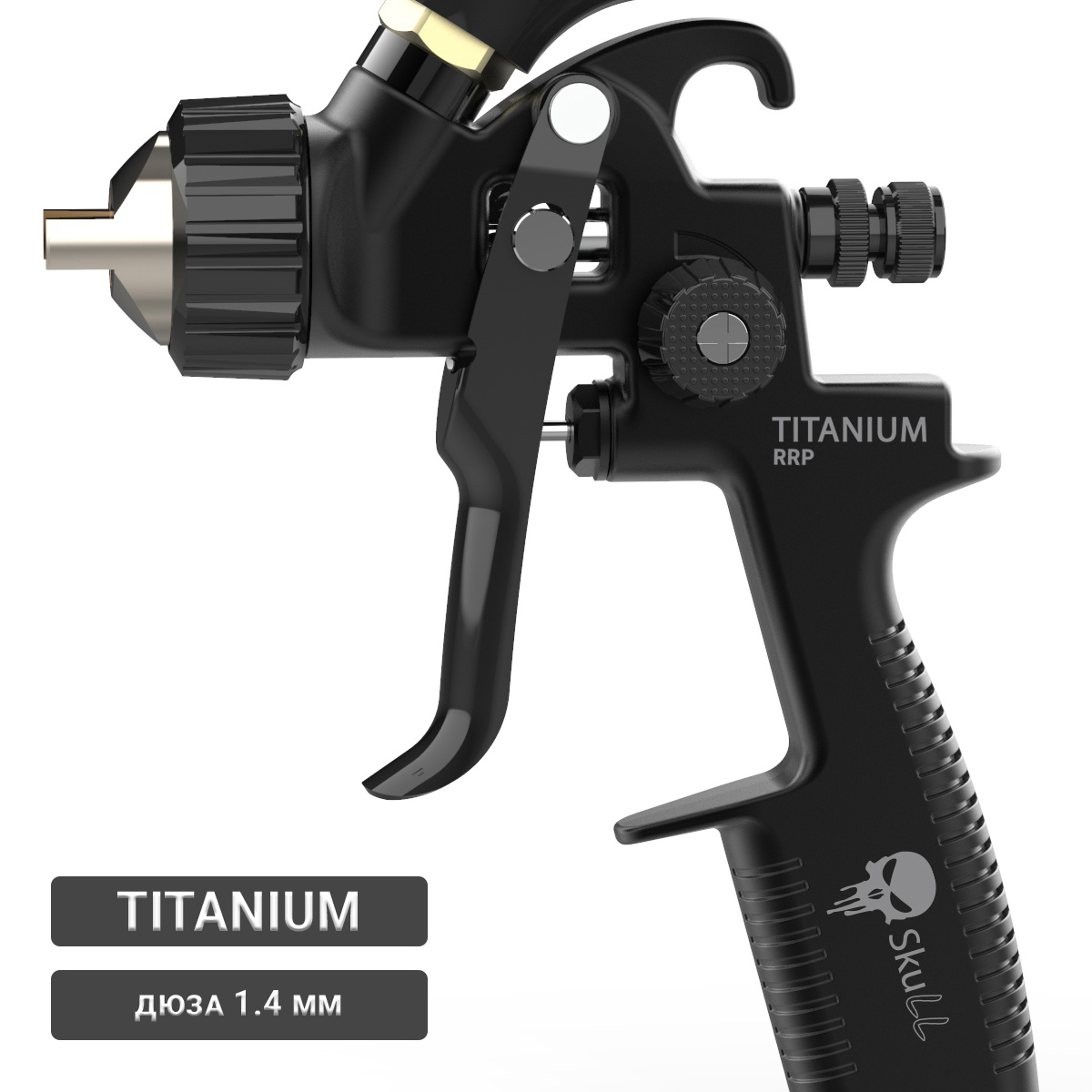 Краскораспылитель RRP TITANIUM d1.4мм черный верхний бачок 600мл SKULL
