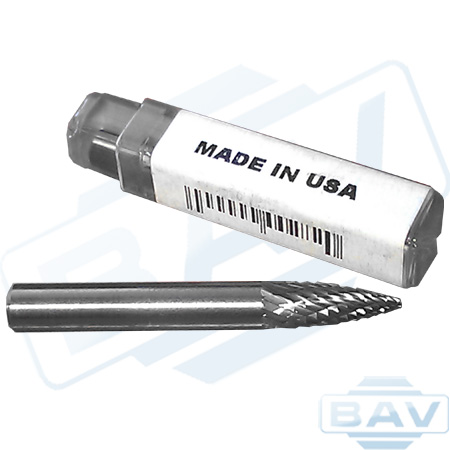 Карбидный конусообразный бур арт. 282 длиной 50 мм используется для удаления концов поврежденного металлокорда в труднодоступных местах благодаря своей длине. Применяется в высокоскоростных пневмодрелях, имеющих скорость вращения 20000 – 22000 об/мин.