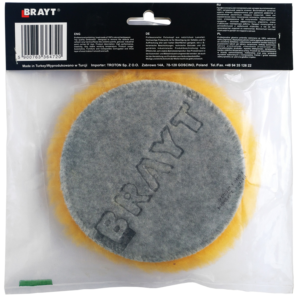 Профессиональный полировальный круг BRAYT выполненная из 100% натуральной шерсти ягненка. Высочайшего качества шерсть ягненка предназначена для удаления дефектов и обновления различных твердых покрытий, таких как керамические лаки, технические гелькоуты, промышленные лаки, отверждаемые УФ излучением.