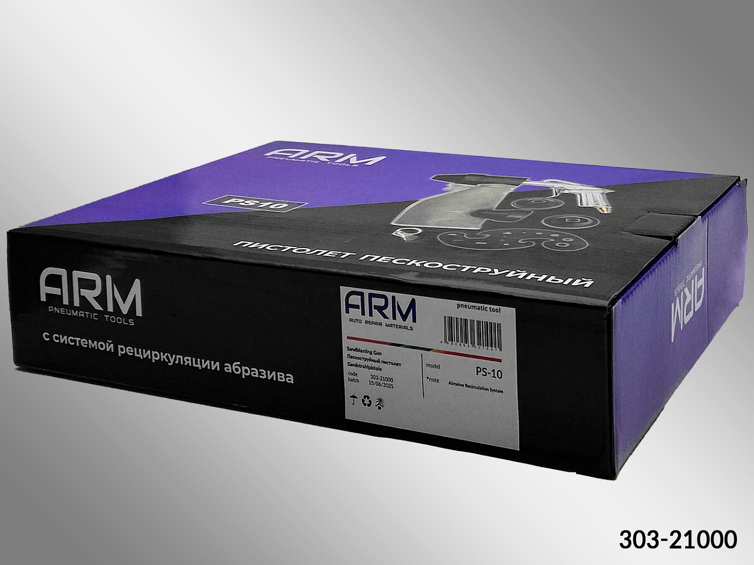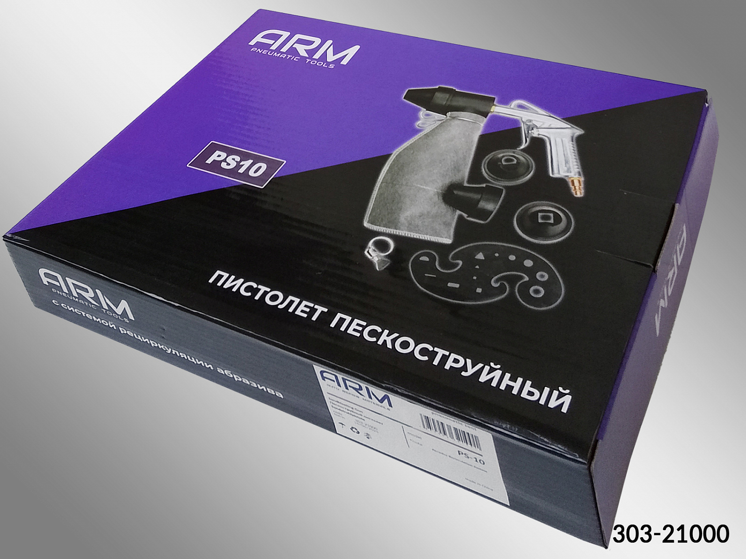 Пескоструйный пистолет PS-10 с системой рециркуляции абразива ARM (303-21000) - эффективное решение для локальной очистки поверхностей. Пневматический пескоструйный пистолет PS-10 ARM предназначен для точечного удаления загрязнений, ржавчины и старых покрытий с использованием струи абразива под давлением. Уникальная система рециркуляции позволяет многократно использовать абразивный материал, что делает работу экономичной и чистой. В комплект входит набор сменных насадок и лекал для точной работы, а также мешок для абразива.