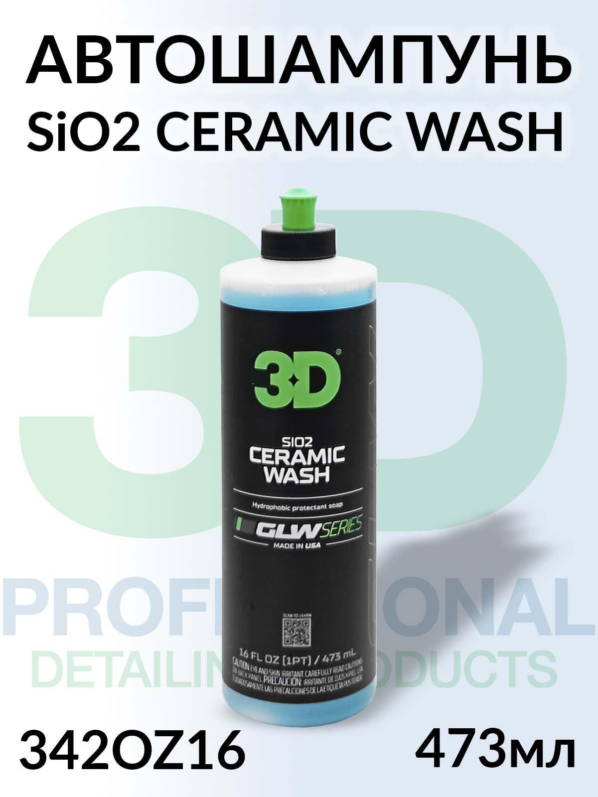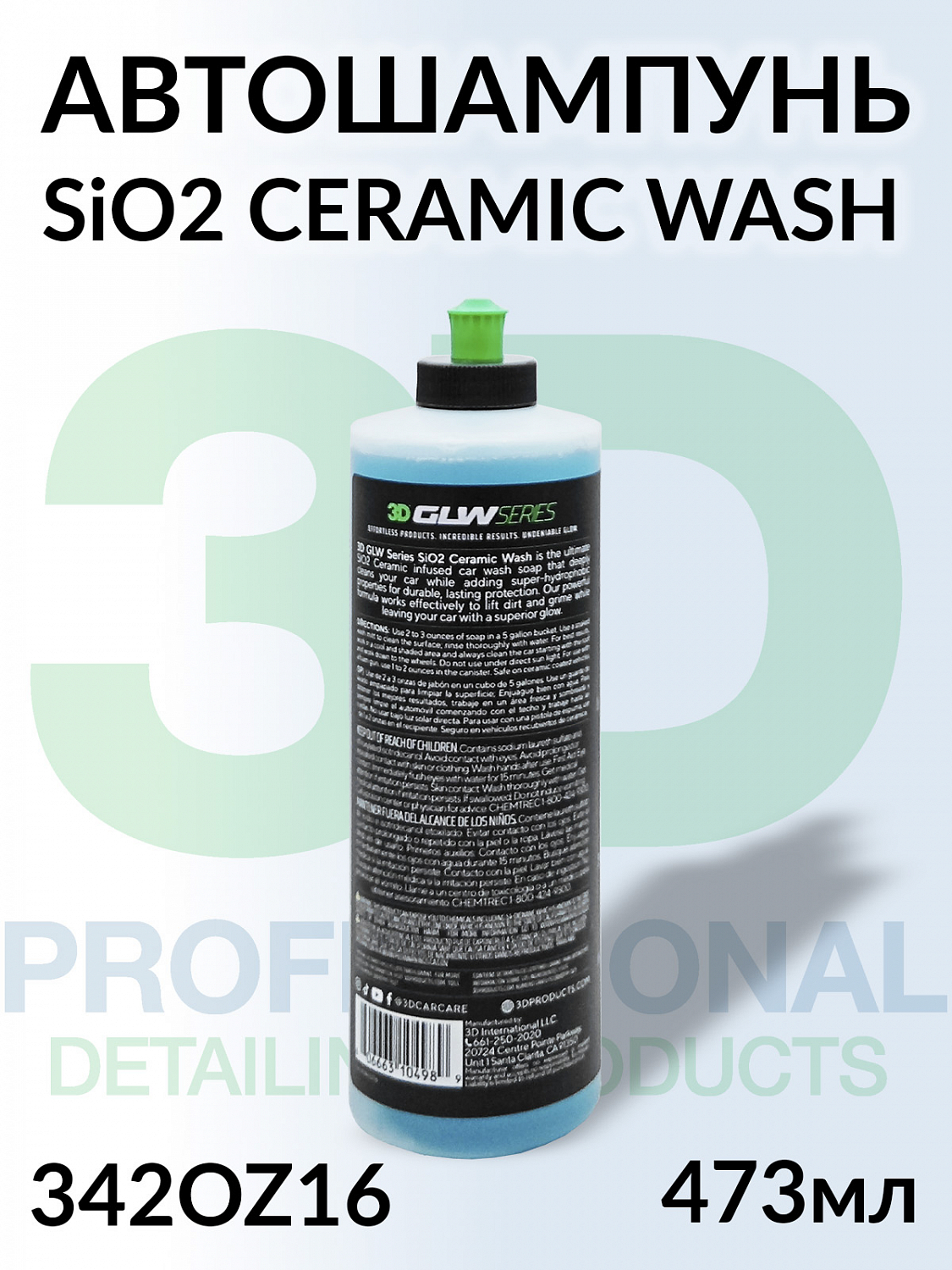 1. автошампунь для керамического покрытия SiO2 CERAMIC WASH серия GLW 3D (473мл)1