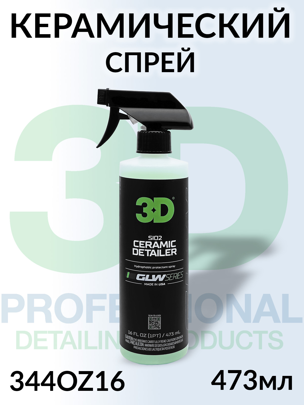 Полимерное защитное покрытие GLW SERIES SIO2 CERAMIC DETAILER 3D (344OZ16) - это высококачественный керамический детейлер, который обеспечит вашему автомобилю блеск, защиту и долгосрочную гидрофобность. Специальная формула с SiO₂ (диоксид кремния) не только очищает поверхность, но и усиливает её защитные свойства, создавая эффект отталкивания воды и грязи. Идеален для применения между мойками или для поддержки существующего защитного покрытия.
