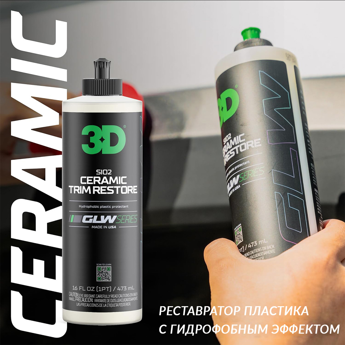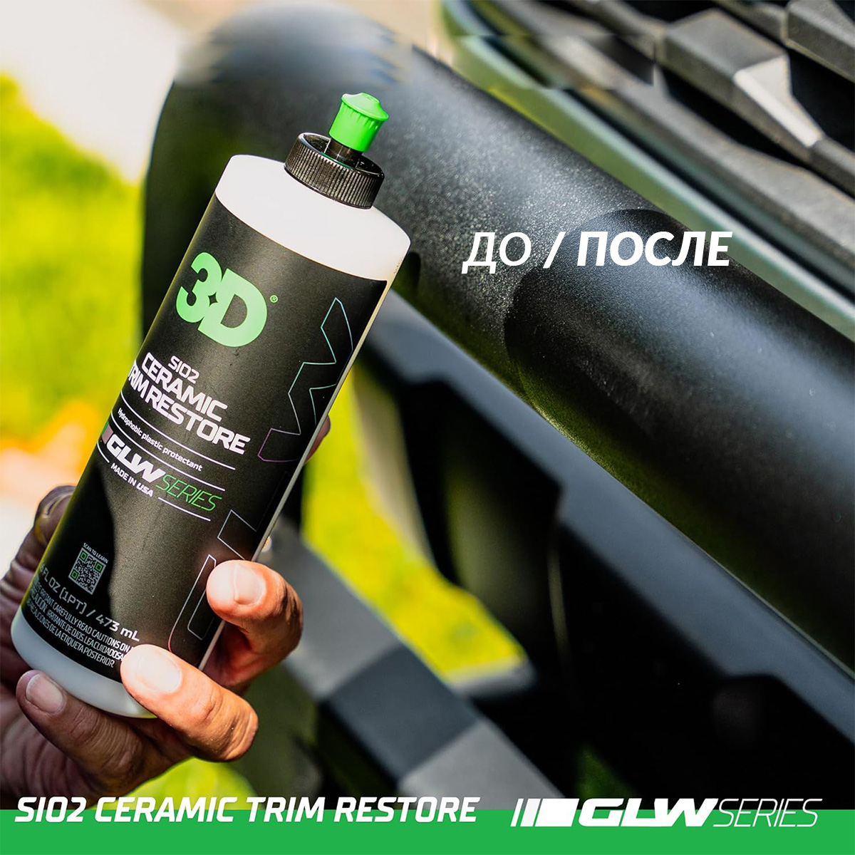 Керамическое средство для восстановления и защиты пластиковых деталей от 3D серии GLW предназначено для восстановления и защиты наружного пластика вашего автомобиля с гидрофобным эффектом. Инновационная формула разработана для восстановления и устранения последствий воздействия ультрафиолетовых лучей и окисления. Средство Ceramic Trim Restore придает насыщенный глубокий темный вид нового изделия, с защитой от солнца, непогоды, наделяя поверхность гидрофобными свойствами.