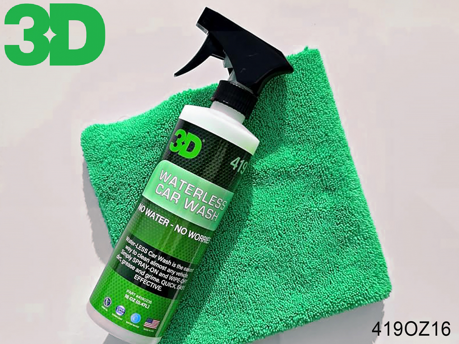 Безводное средство для быстрой мойки кузова 419 Waterless Car Wash 3D - это безводная формула для мойки автомобилей, которая не только очищает ваш автомобиль, но и делает его глянцевым и защищенным. Waterless Car Wash - это экологически чистый способ мойки вашего автомобиля в любое время и в любом месте! Достаточно просто нанести средство на поверхность и просто протереть его салфеткой.