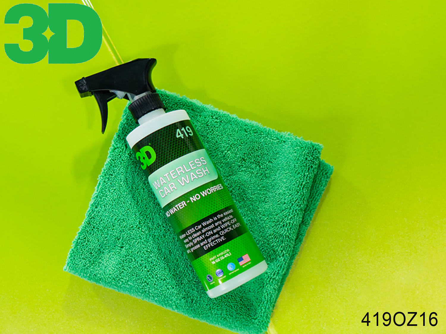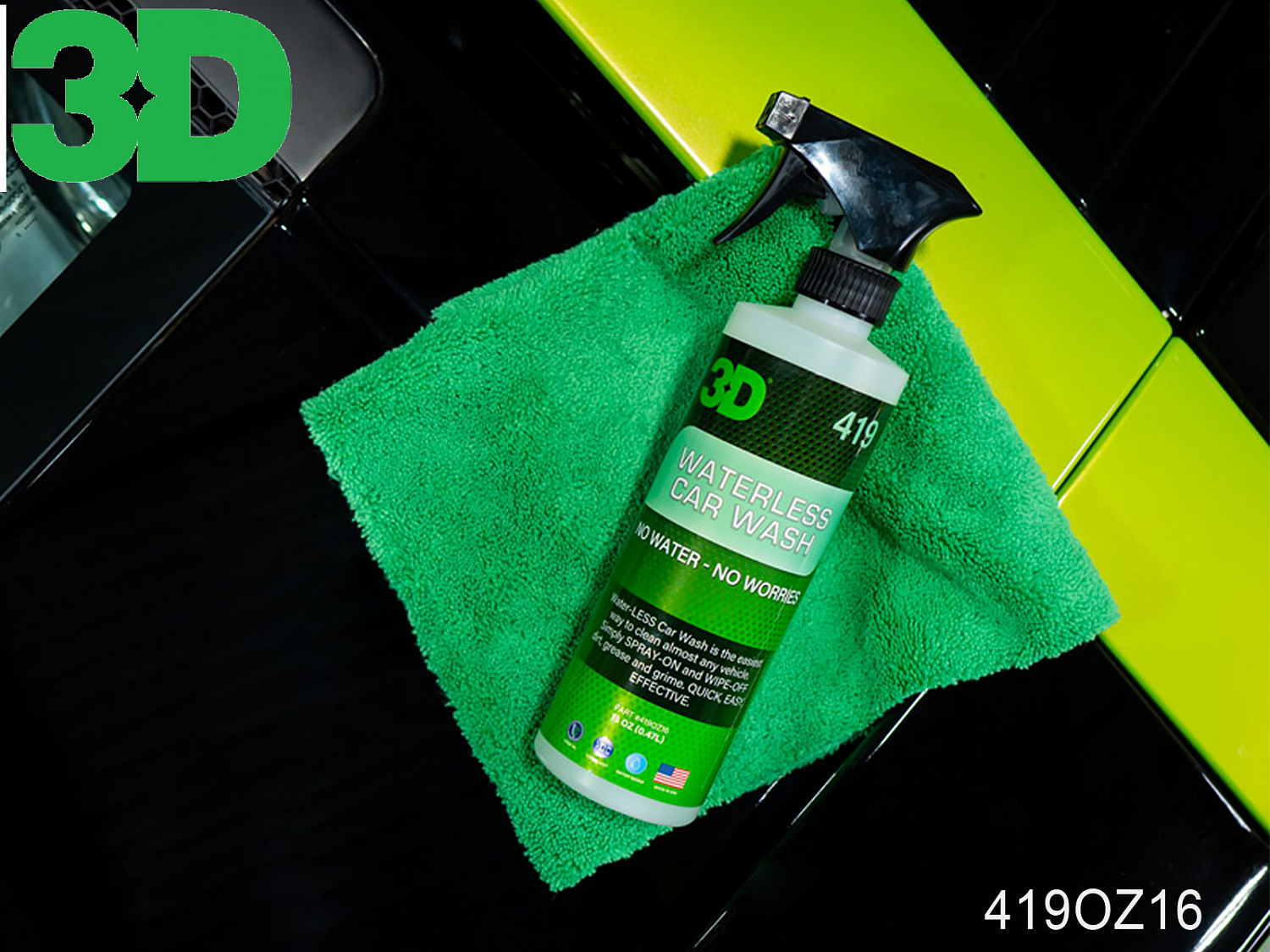 Средство для мытья кузова 419 безводное WATERLESS CAR WASH 3D (спрей, 473мл)