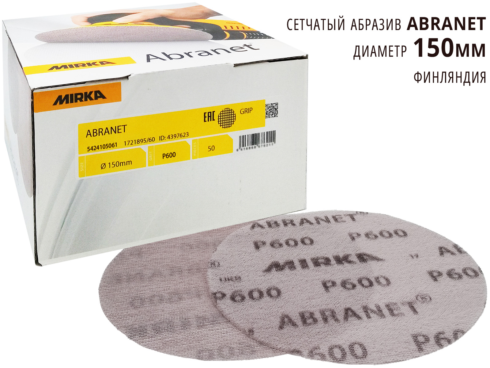 Круг абразивный P 600 150мм сетка ABRANET MIRKA - оригинальная, многофункциональная шлифовальная сетка, сочетающая в себе отличную продуктивность и больший ресурс работы по сравнению с традиционными абразивами. Предназначен для ручного и машинного шлифования в сухом режиме.  Это практически беспыльное шлифование, которое обеспечивает и чистую рабочую среду, и более качественную поверхность.