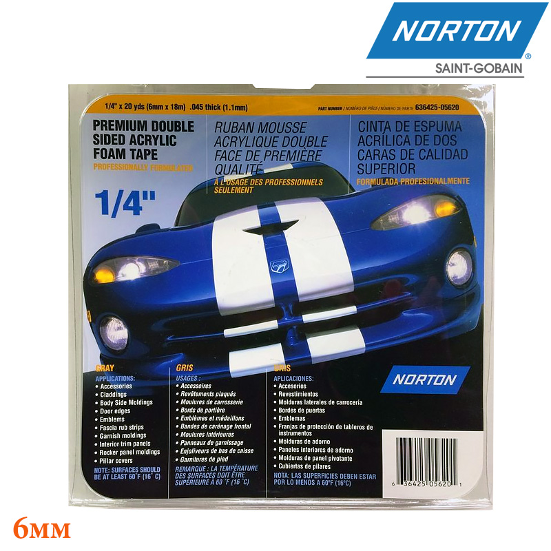 Клеющая двухсторонняя cерая лента NORTON (636425-05620) высокой плотности покрытая высокопрочным акриловым клеем с двух сторон разработана для соединения как средних так и больших молдингов и комплектующих. Высокопрочный акриловый клей обеспечивает превосходную адгезию к пластикам, металлу, стеклу и окрашенным поверхностям. Используется для дополнительных кузовных боковых молдингов, покрытий, дверных кромок, эмблем, облицовочных панелей, декоративных планок, внутренних панелей автомобилей.