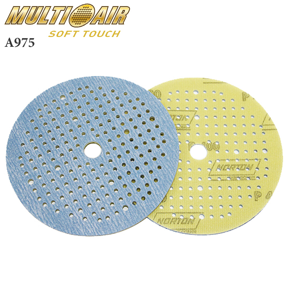 Абразивные круги Multi-Air Soft-Touch A975 NORTON изготовлены со специальным мягким поролоновым слоем на тыльной стороне и обладают высокой производительностью и исключительно длительным сроком службы, будучи непосредственно соединены с абразивной бумагой. Поролоновый слой легко выбирает любые перепады поверхности, поддерживая очень однородное снятие слоя и высококачественную чистовую обработку поверхности. Помимо этого, оригинальная система Soft-Touch запатентованная фирмой NORTON, рассчитана для каждого вида применения. Разные цвета липучки для кругов разной зернистости облегчают использование кругов NORTON Pro Soft-Touch.