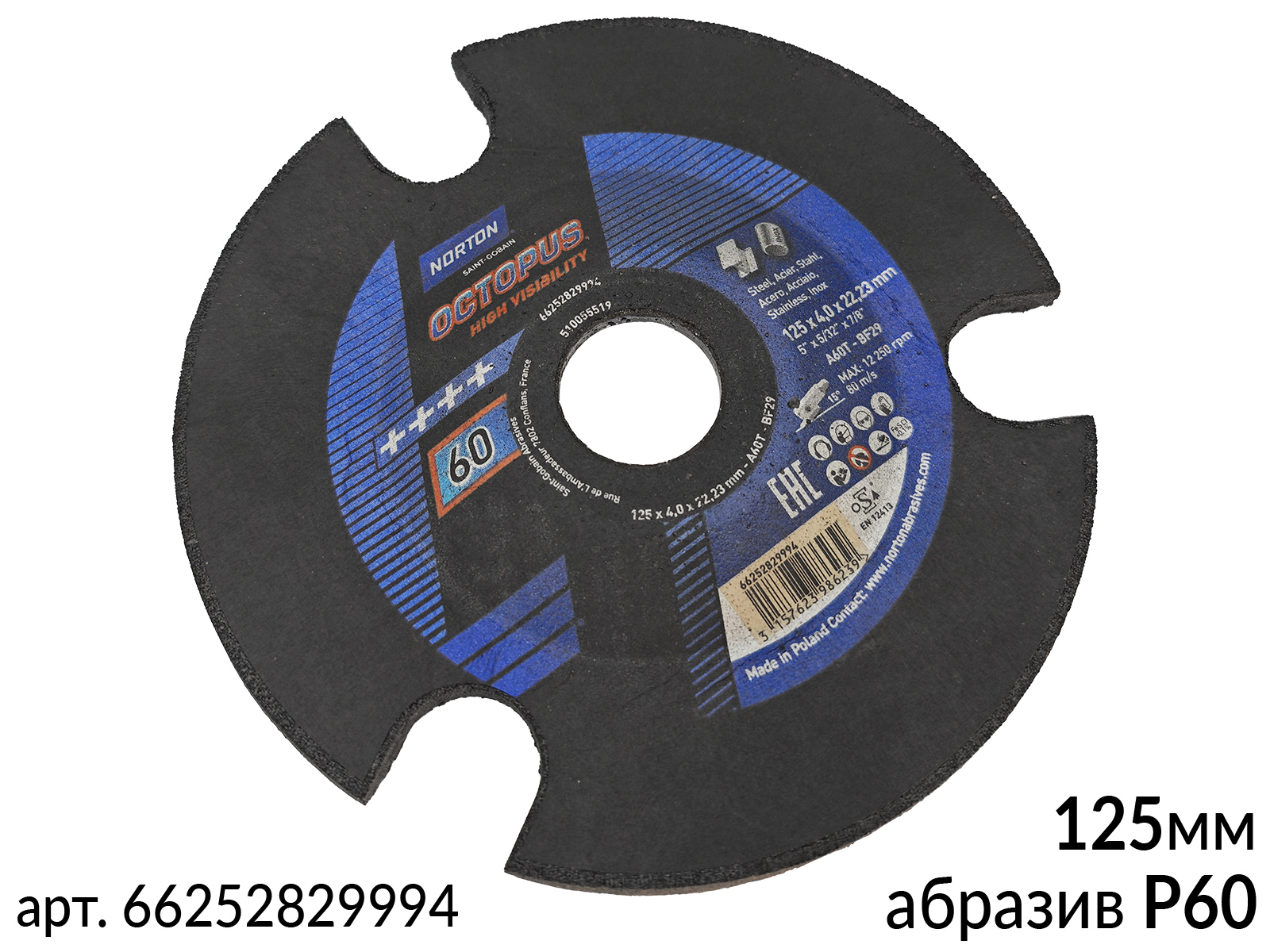 Диск зачистной для сварных швов P 60 125мм по металлу OCTOPUS NORTON