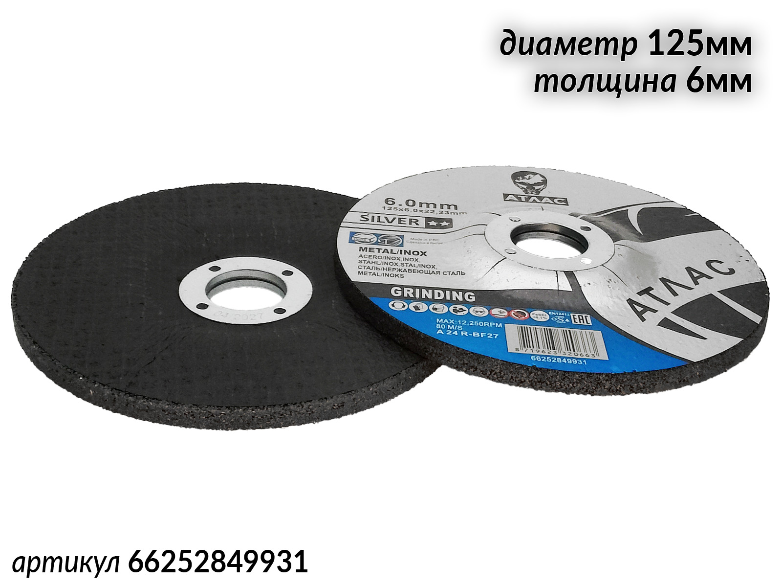 Диск зачистной 125х6мм по металлу и нержавейке SILVER АТЛАС