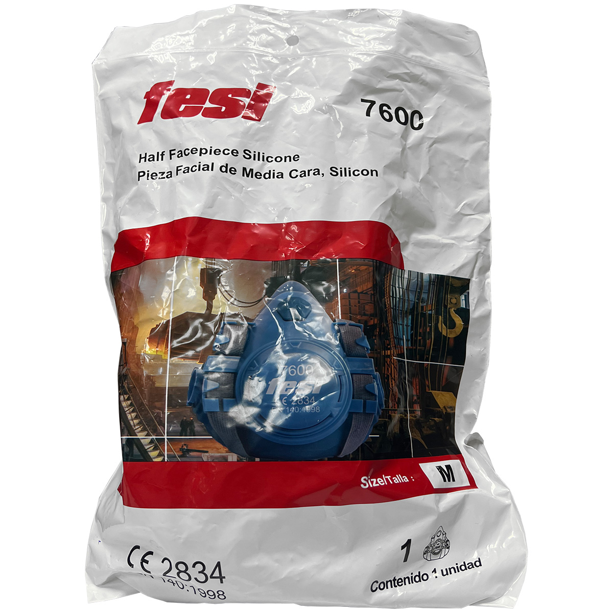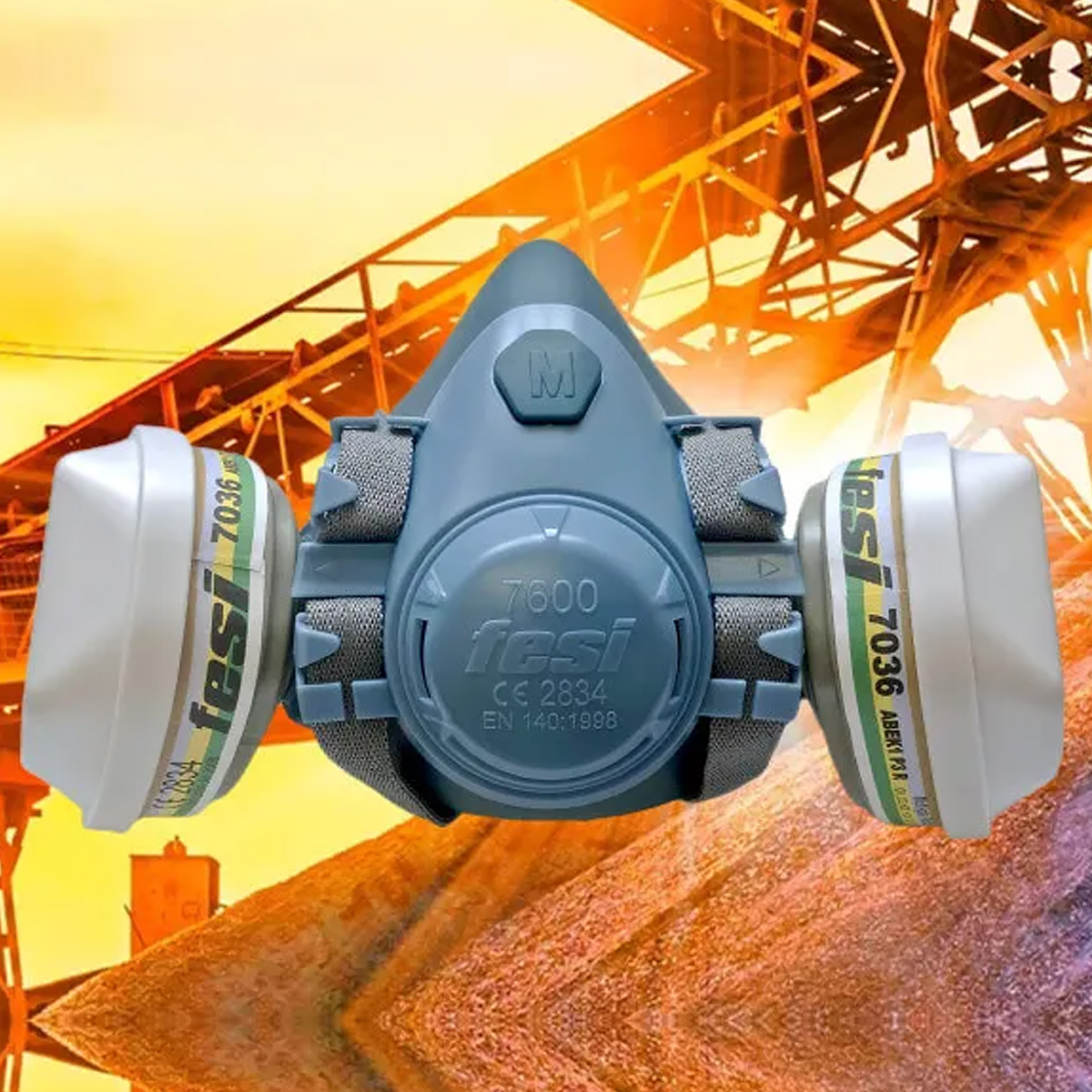 Полумаска FESI серии 7600 с силиконовой лицевой частью, байонетным креплением фильтров, эффективным клапаном выдоха, системой быстрого сброса полумаски.