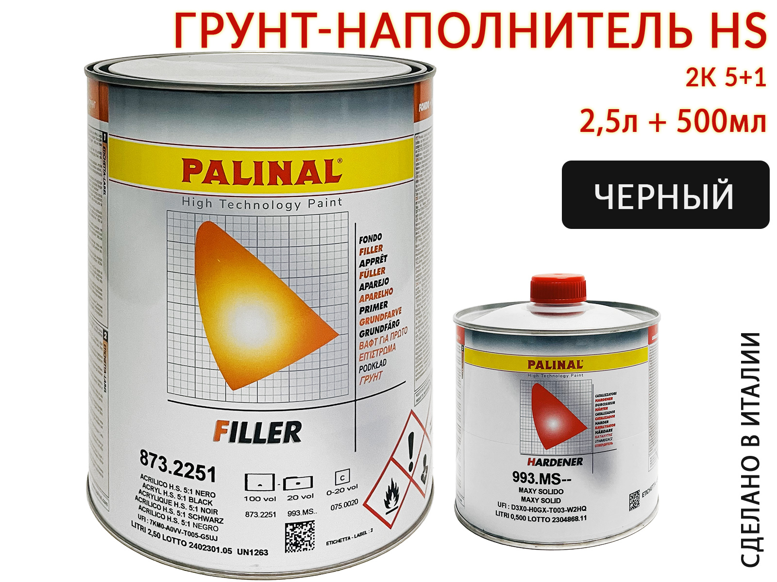 Грунт 5+1 черный HS акриловый с отвердителем 993MS PALINAL (2,5л+0,5л)