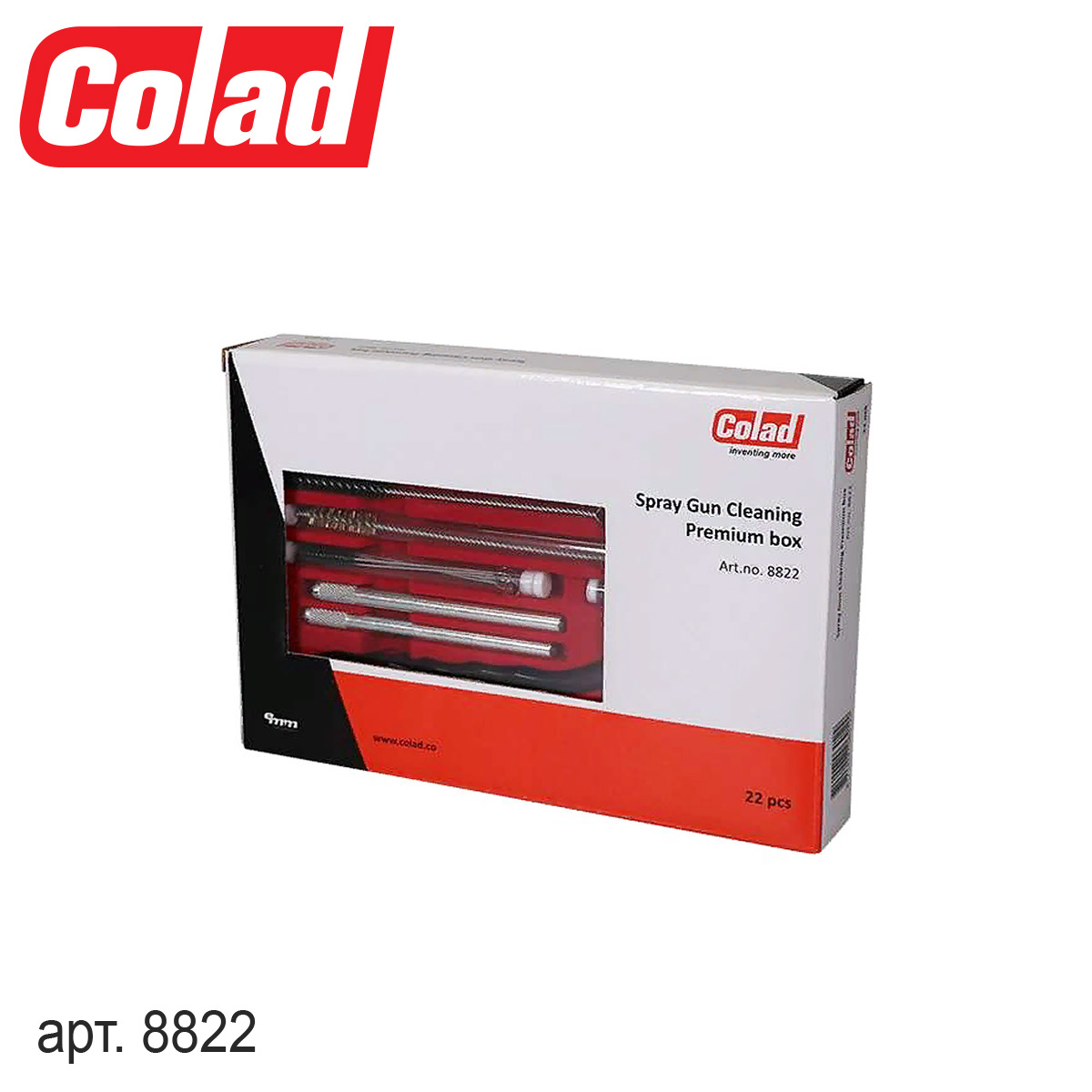 Примеальный набор для чистки покрасочного пистолета COLAD (8822) - очистите и удалите остатки краски с помощью небольших щеток и игл и защитите свой драгоценный распылитель, воспользовавшись данным Премиум-набором.