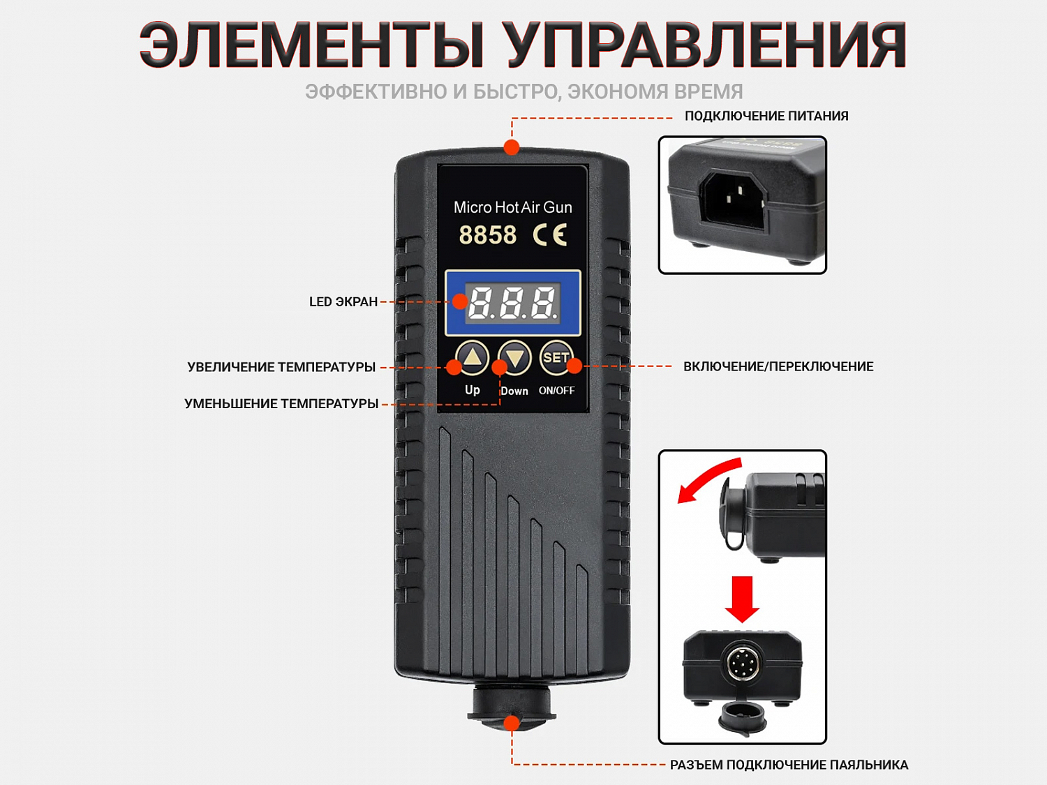 - Удобный портативный и цифровой светодиодный дисплей на блоке питания.