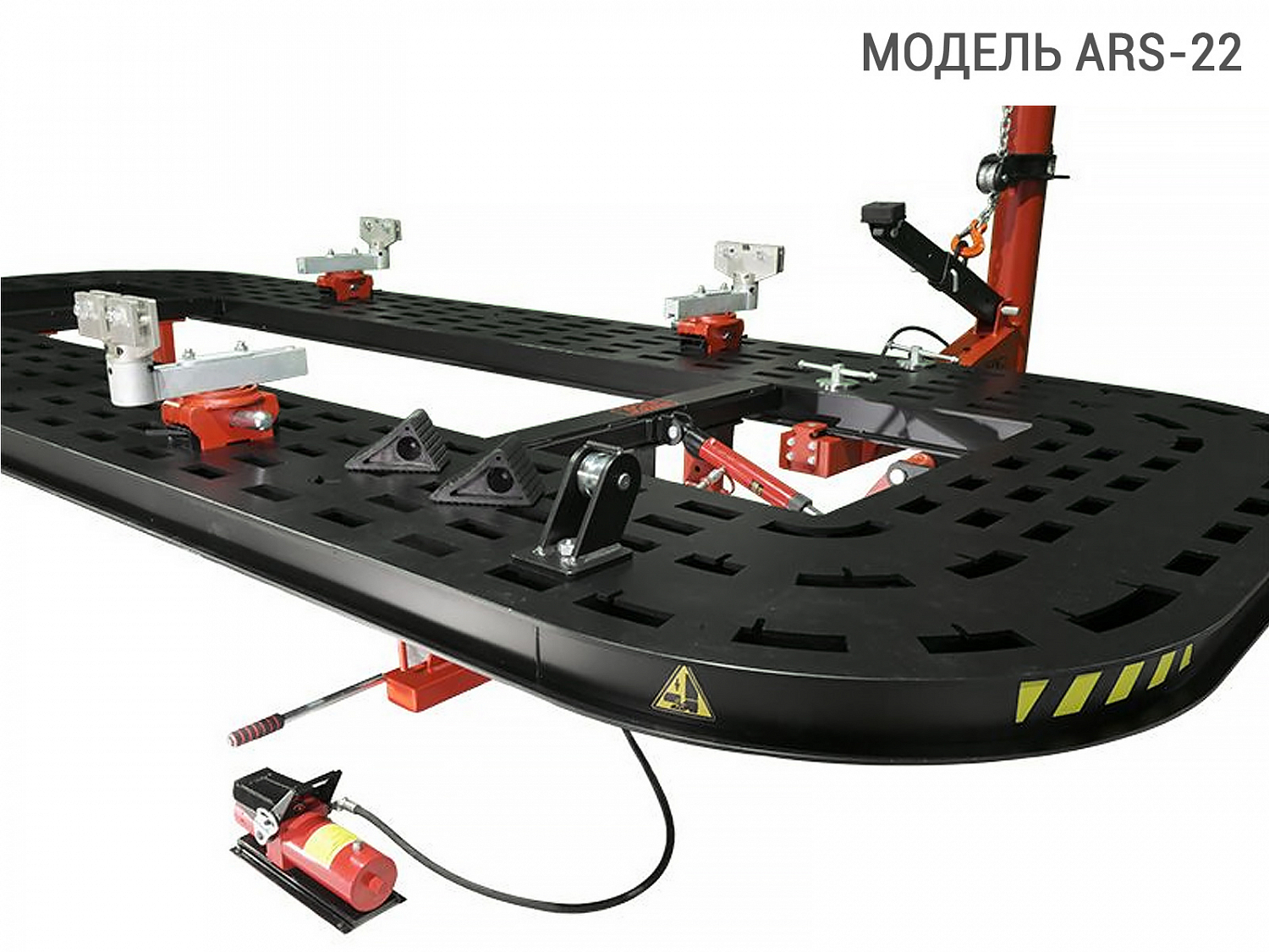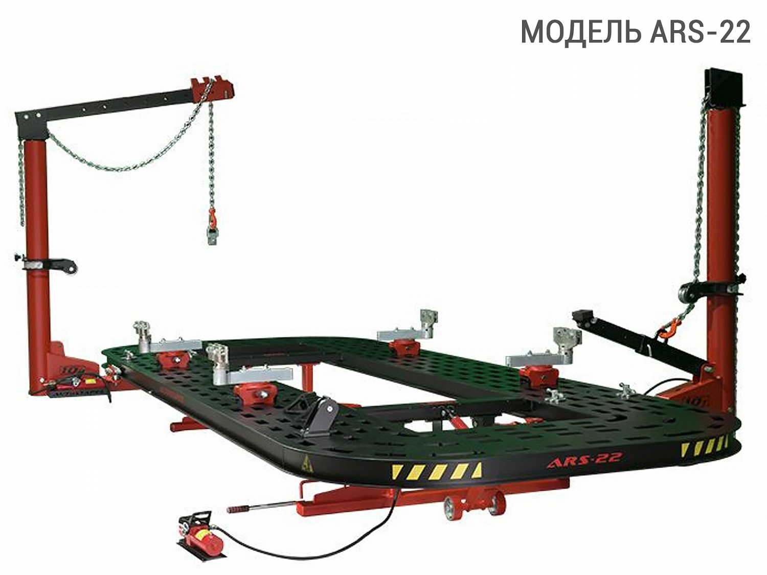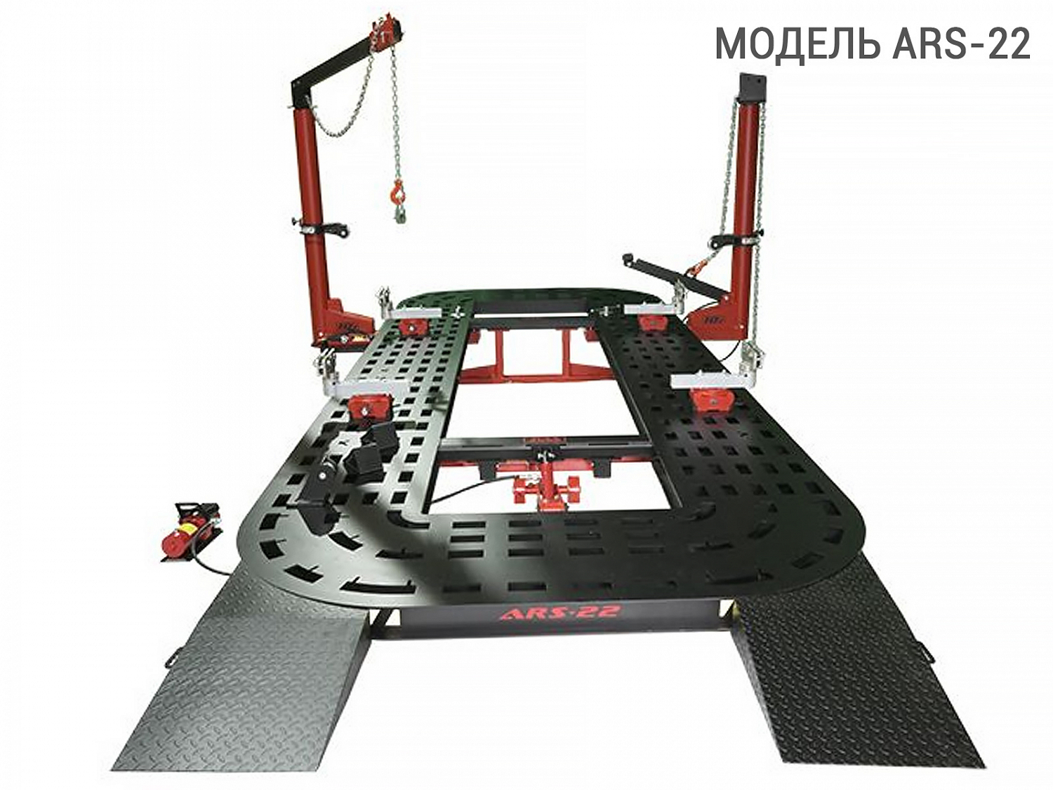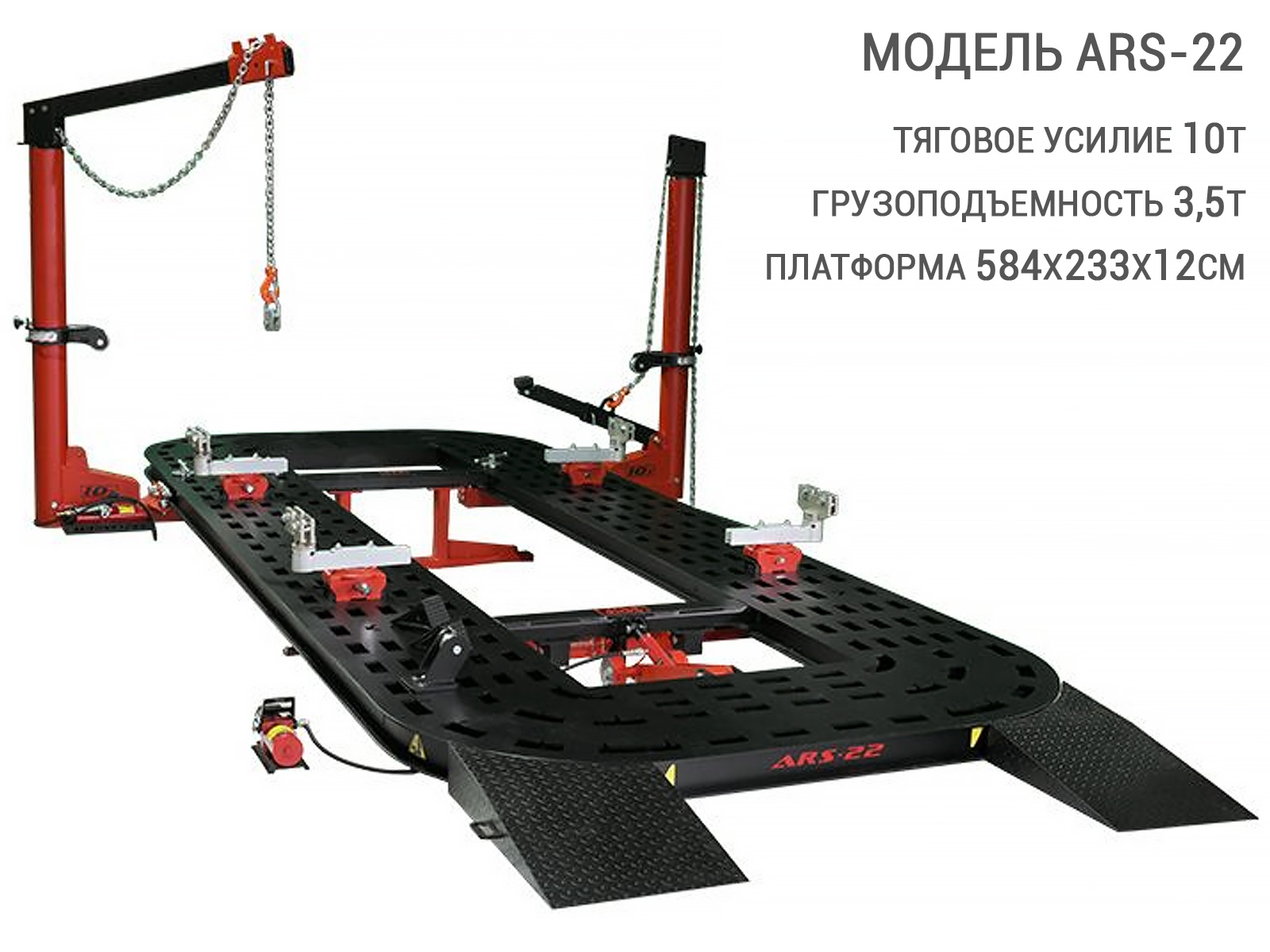 Стенд для восстановления геометрии кузова ARS 22 AUTOSTAPEL - профессиональное оборудование нового поколения из серии AUTOSTAPEL ARS-20+ представляет собой усовершенствованную платформу для точного восстановления геометрии кузовов и рам легковых автомобилей и коммерческого транспорта весом до 3500кг. Специально спроектированные силовые башни, легко перемещаются по всему периметру платформы и позволяют создать тяговое усилие в 10 тонн в любой точке платформы, на любой высоте. Силовые башни управляются пневмогидравлическими насосами, одна из которых комплектуется балкой для вытягивания крыши.