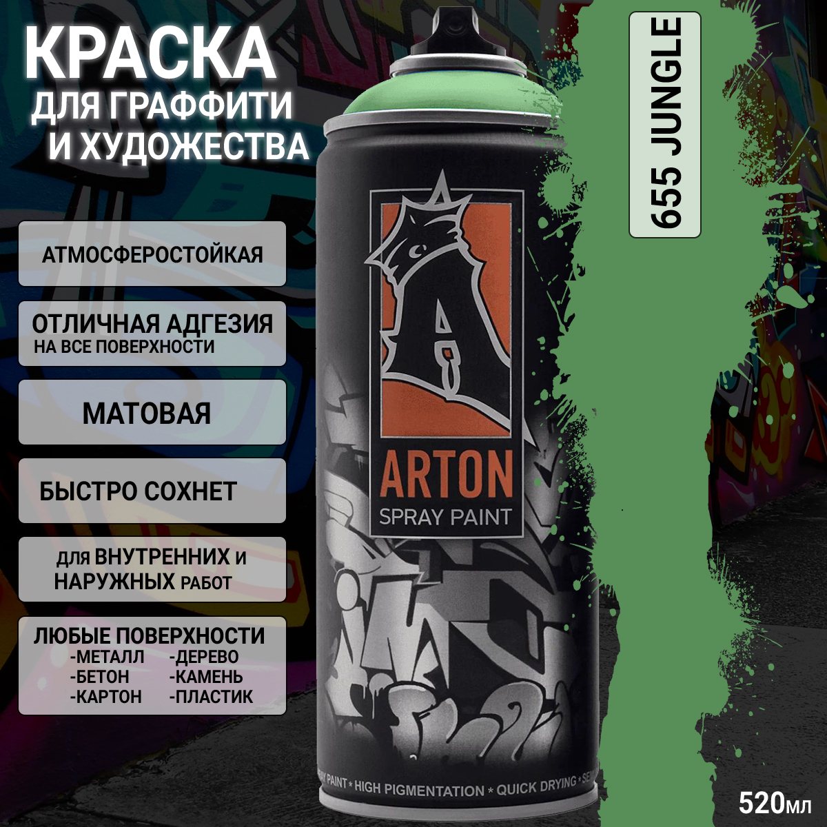 1. A655 джунгли/JUNGLE краска для граффити аэрозоль ARTON (520мл)1