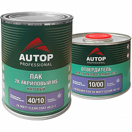 Двухкомпонентный матовый лак 40/10 AUTOP PROFESSIONAL применяется при ремонтной покраске автомобиля. Лак 40/10 идеально подходит для локального ремонта деталей небольшого размера (бамперов, корпусов зеркал, молдингов и т.д.). Лак идет в комплекте с отвердителем 10/00.