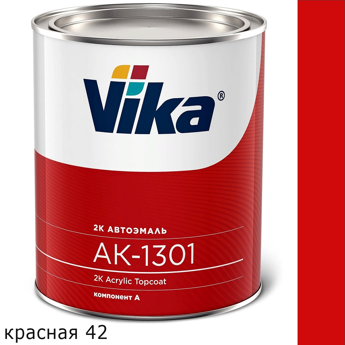 красная 42 акриловая автоэмаль АК-1301 VIKA двухкомпонентная предназначена для ремонтной окраски кузова и пластмассовых деталей автомобиля, может применяться для окраски крупногабаритных транспортных средств. Автоэмали Vika обладают уникальной точностью совпадения расцветок авторемонтных эмалей и оригинальной "заводской" окраской автомобиля. Имеет глянцевый блеск , устойчива к выгоранию. Наноситься в 2-3 слоя методом распыления. Время сушки: от пыли 30мин (20С), полное высыхание 16 часов (20С).