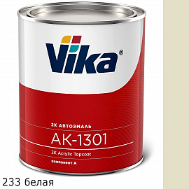 233 белая акриловая автоэмаль АК-1301 VIKA двухкомпонентная предназначена для ремонтной окраски кузова и пластмассовых деталей автомобиля, может применяться для окраски крупногабаритных транспортных средств. Автоэмали Vika обладают уникальной точностью совпадения расцветок авторемонтных эмалей и оригинальной "заводской" окраской автомобиля. Имеет глянцевый блеск , устойчива к выгоранию. Наноситься в 2-3 слоя методом распыления. Время сушки: от пыли 30мин (20С), полное высыхание 16 часов (20С).