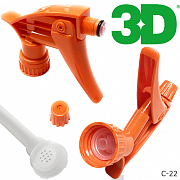 Распылитель С-22 3D (оранжевого цвета) предназначен для распыления агрессивных химикатов, сильных очистителей, обезжиривающих средств, растворителей. Триггер С-22 является более бюджетной версией триггера С-11.