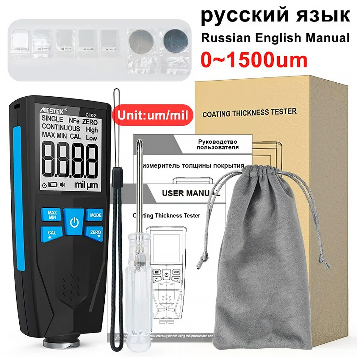 Толщиномер ЛКМ CT02 все металлы, толщина до 1500мкм MESTEK (без батареек)