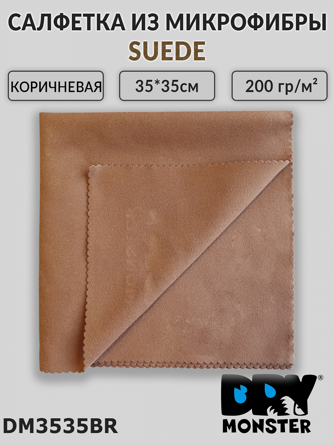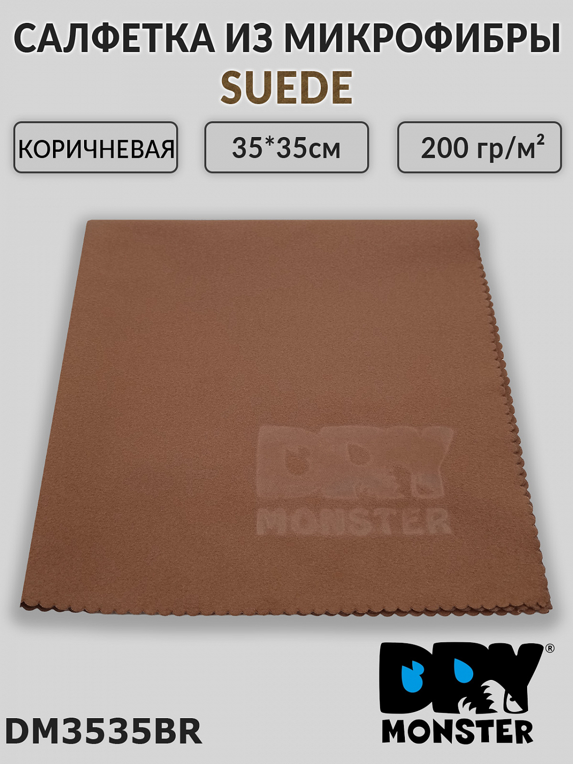 Салфетка из микрофибры 200 гр/м² КОРИЧНЕВАЯ 35х35см SUEDE DRY MONSTER