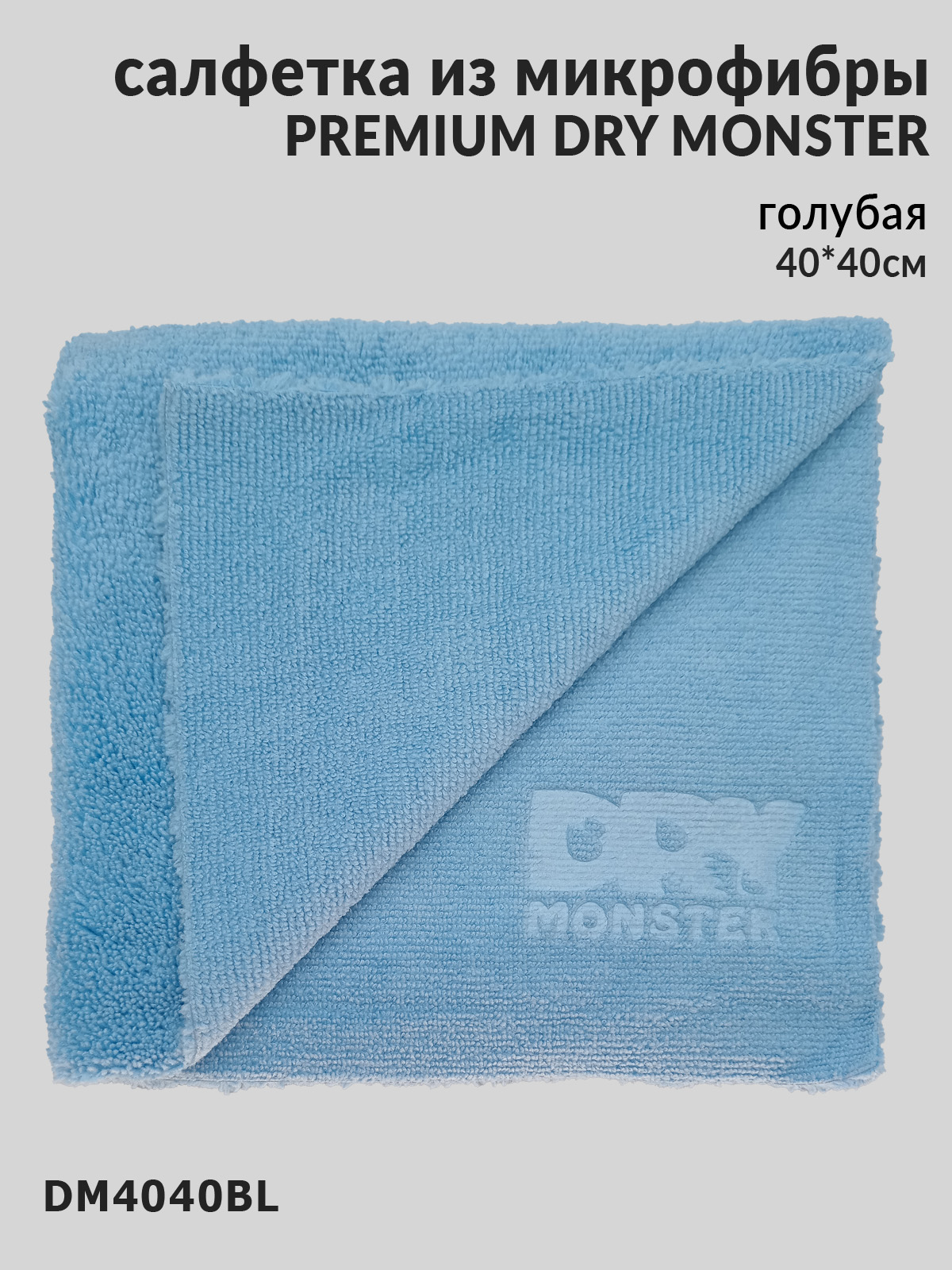 Профессиональная салфетка из микрофибры PREMIUM BL DRY MONSTER (DM4040BL) предназначена для быстрой и безопасной сушки автомобиля после мойки. Благодаря повышенной плотности волокон и особой структуре материала она моментально впитывает большое количество воды, не оставляя разводов и пятен на поверхности.