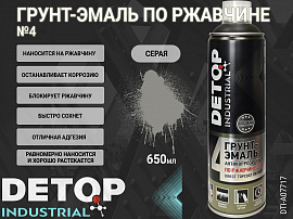 Грунт-эмаль №4 по ржавчине серая RAL-7005 "3 в 1" INDUSTRIAL DETOP (аэрозоль, 650мл)