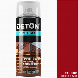 Грунт-эмаль RAL 3005 красное вино для профнастила и металлочерепицы DETON (аэрозоль, 520мл)
