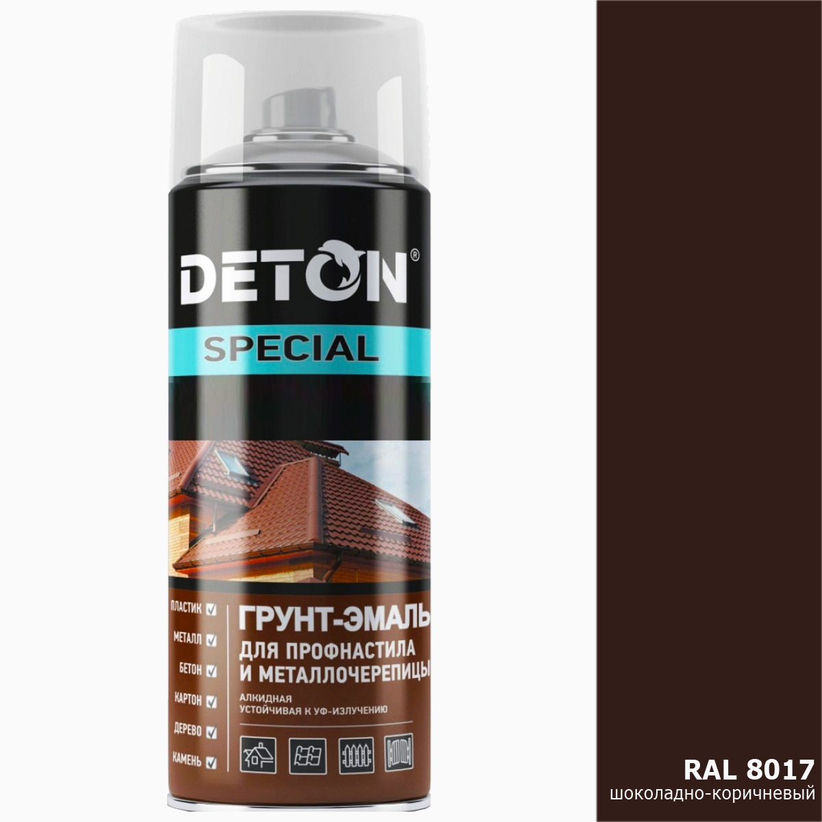 Грунт-эмаль RAL 8017 шоколадно-коричневый для профнастила и металлочерепицы DETON (аэрозоль, 520мл)