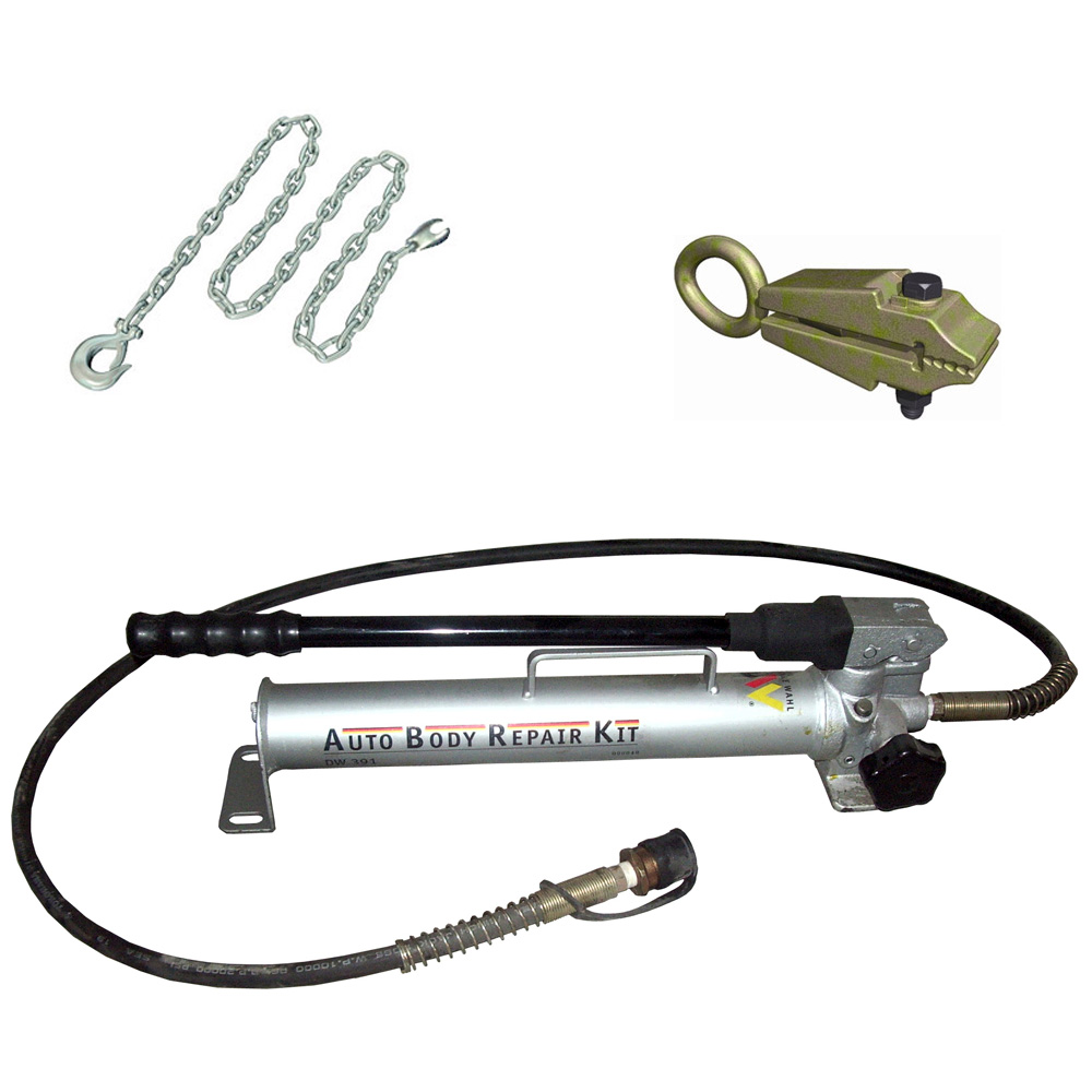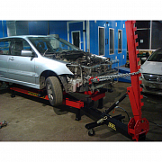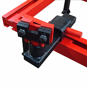Силовое устройство рассчитано под использование 10 тонной гидравлики, способно автономно перемещаться по цеху и подсоединяться к раме в любом удобном для работы месте. Конструкция устройства обеспечивает надежность и простоту в обращении, а также позволяет создавать направление тяги в необходимом для ремонта диапазоне.