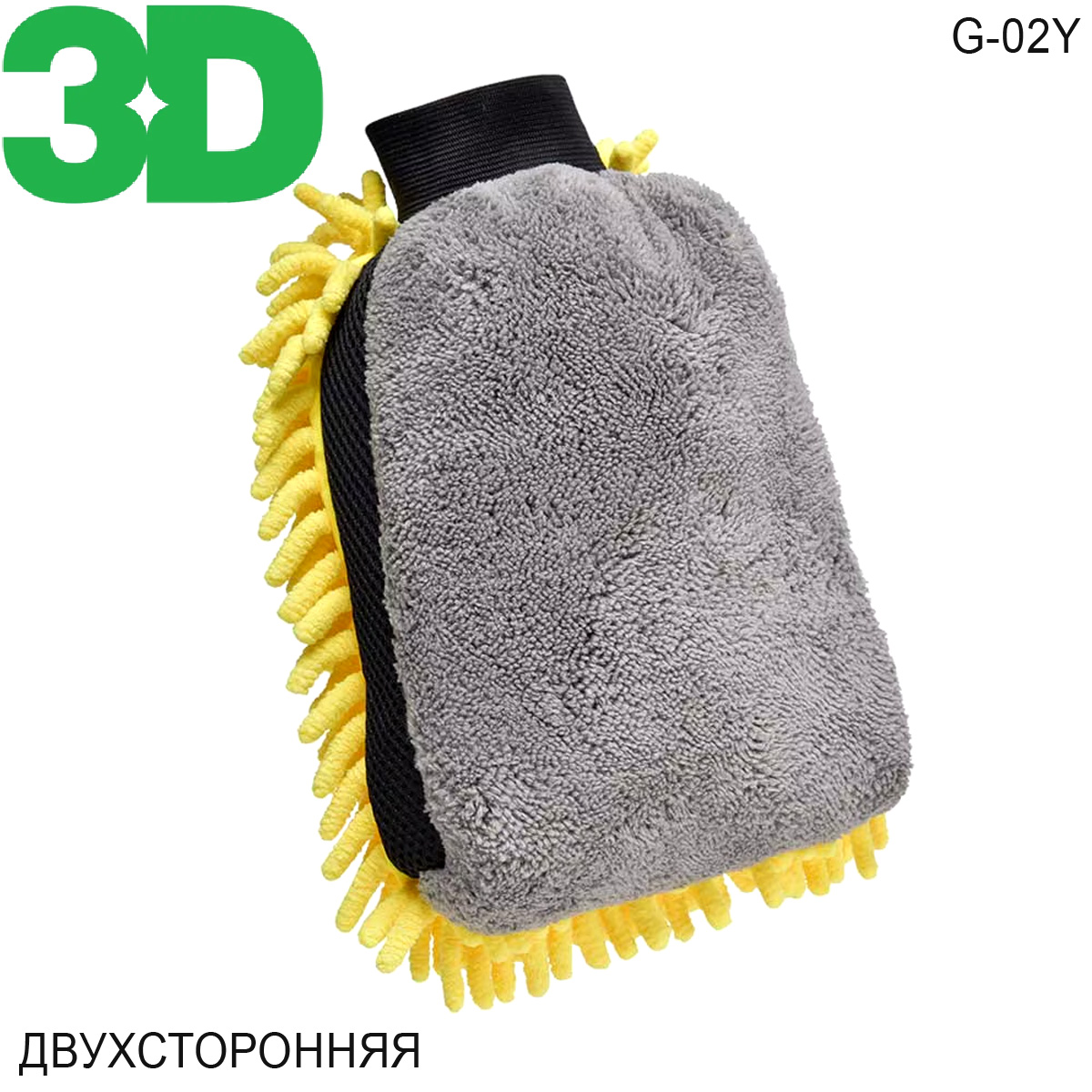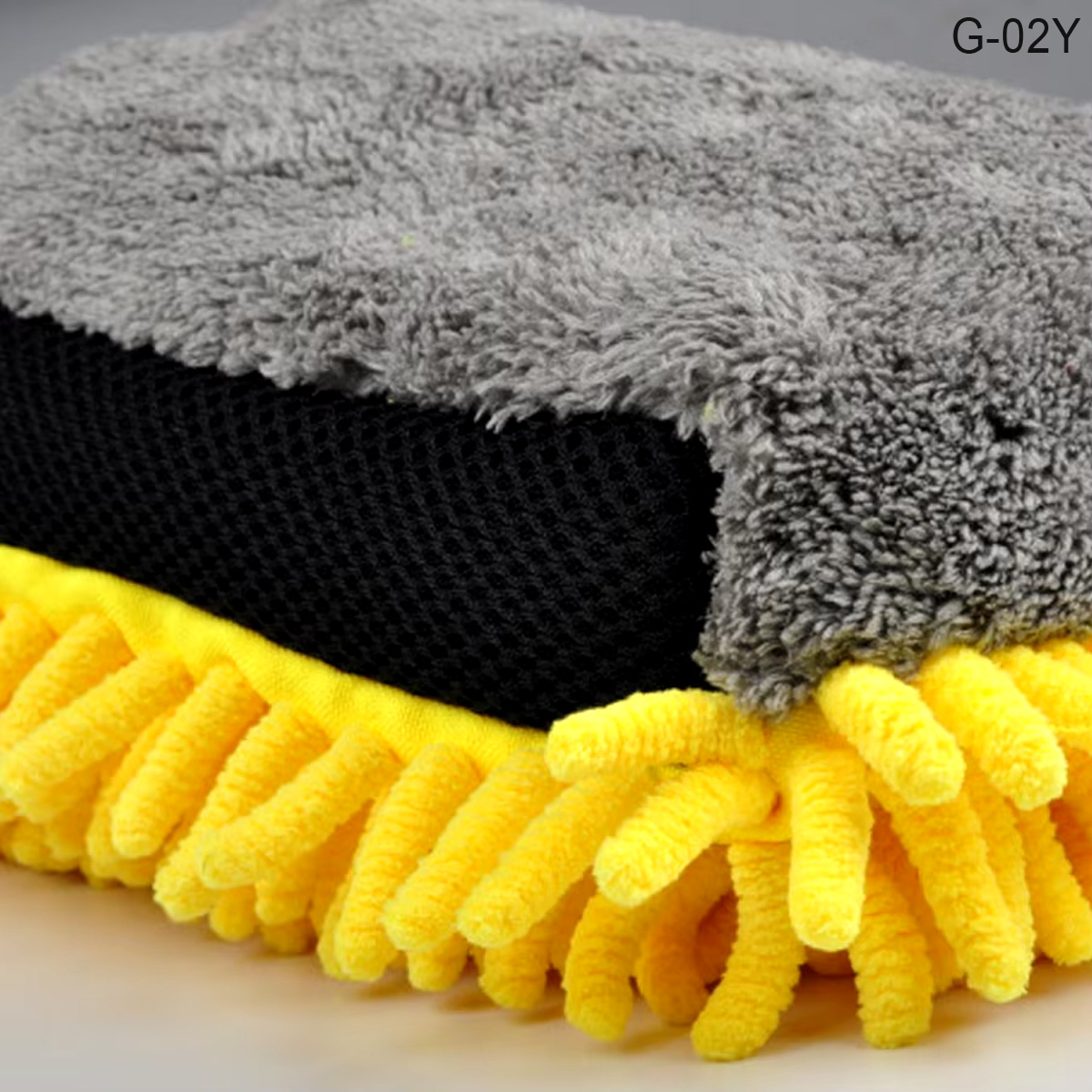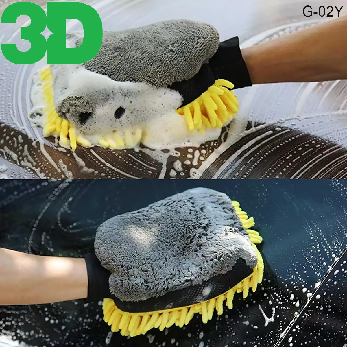 Двухсторонняя рукавицы для мойки кузова автомобиля3D (G-02Y Microfiber Wash Mitt Yellow Gloves) cочетает в себе три различных инструмента для мойки в одном удобном аксессуаре, который позволяет мыть каждую зону вашего автомобиля, сохраняя при этом руки в чистоте. Мягкими дредами из микрофибры аккуратно удаляйте пыльные и абразивные загрязнения с изгибов и контуров. Переверните варежку, чтобы аккуратно убрать тяжелую грязь с лакокрасочного покрытия, металла, стекла и пластиковых поверхностей с помощью микрофибры с коротким ворсом. Следы насекомых или помет удалите боковой поверхностью рукавицы.