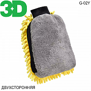Рукавица для мойки авто ДВУХСТОРОННЯЯ из микрофибры 3D (желтая)