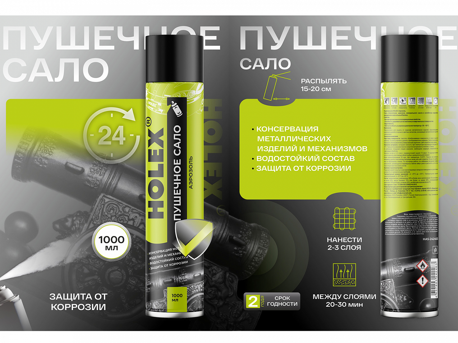 Пушечное сало в аэрозоле HOLEX (HAS-242463) – современное решение для антикоррозийной защиты и консервации металлических изделий и механизмов.