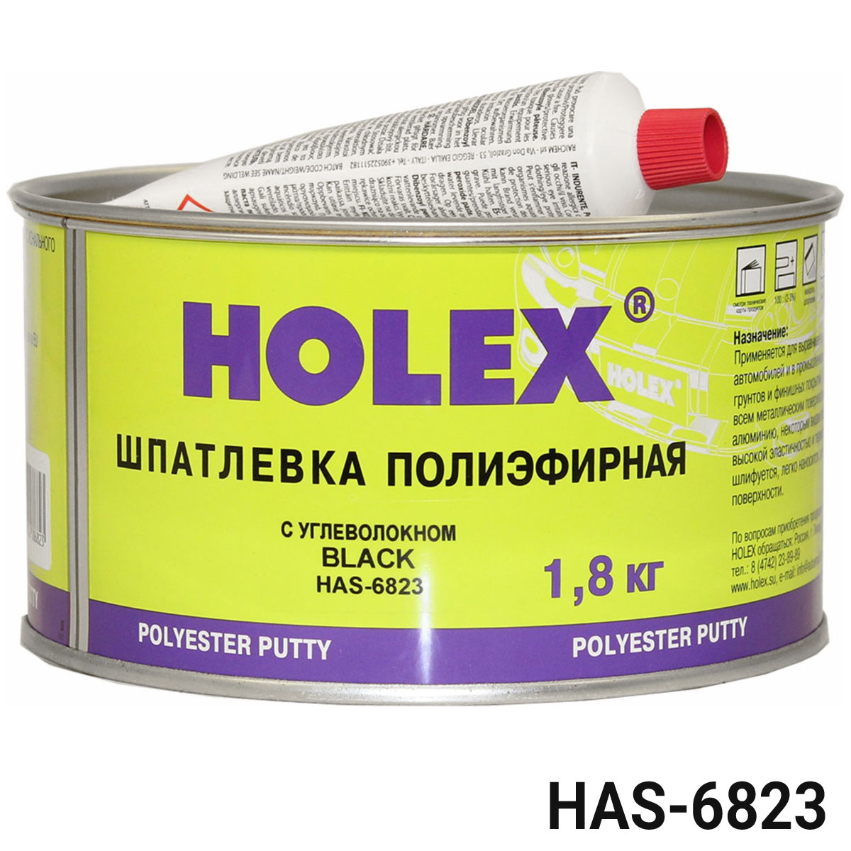 Армированная углеволокном конструкционная полиэфирная шпатлевка BLACK HOLEX (HAS-6823) - высококачественная полиэфирная шпатлевка армированная углеволокном для кузовногоремонта. Рекомендуется для заполнения больших вмятин и дыр в транспортных средствах. Высокая твердость и эластичность. Короткое время отверждения, шпатлевка просыхает равномерно и полностью, что исключает просадку материала в дальнейшем. Легко шлифуется, образуя гладкую поверхность без пор. Во время обработки, шпатлевка не забивает абразивную бумагу. Обладает хорошими адгезионными свойствами к различным видам металла. Хорошая теплопроводимость.