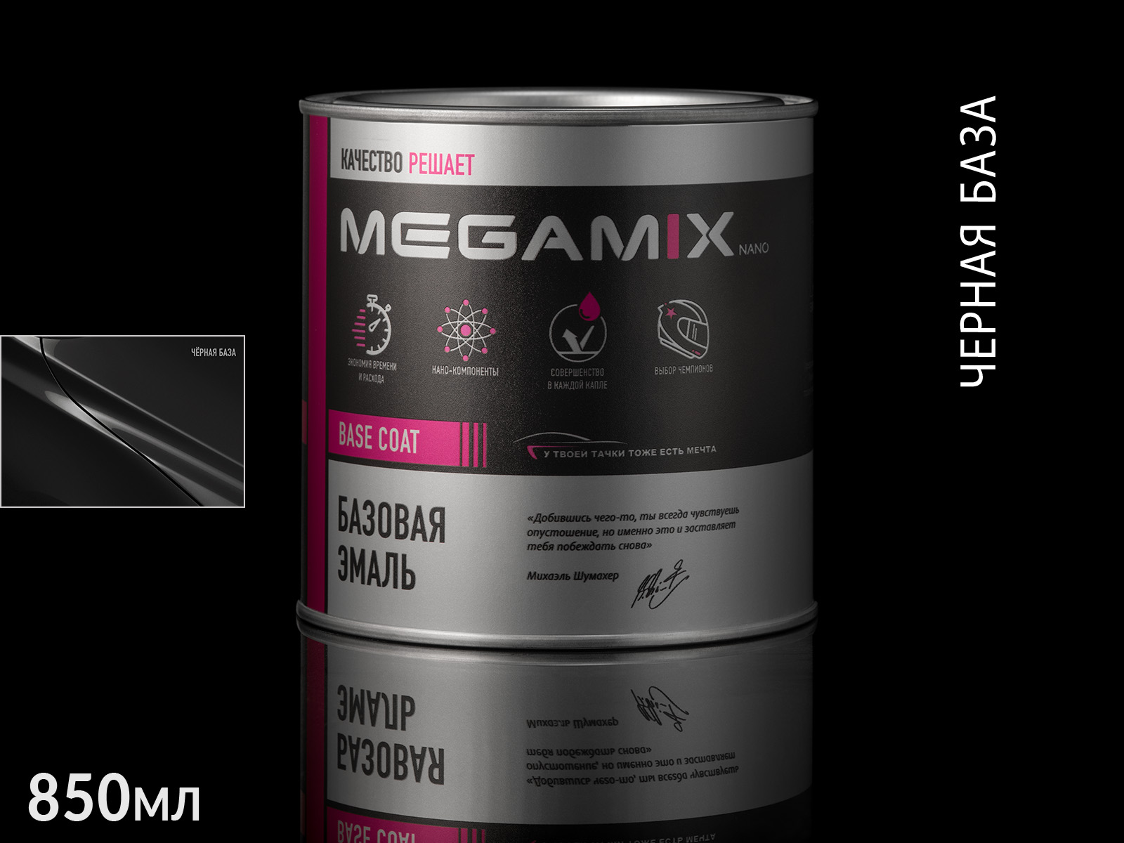 Черная база металлик автоэмаль MEGAMIX (0,85л)
