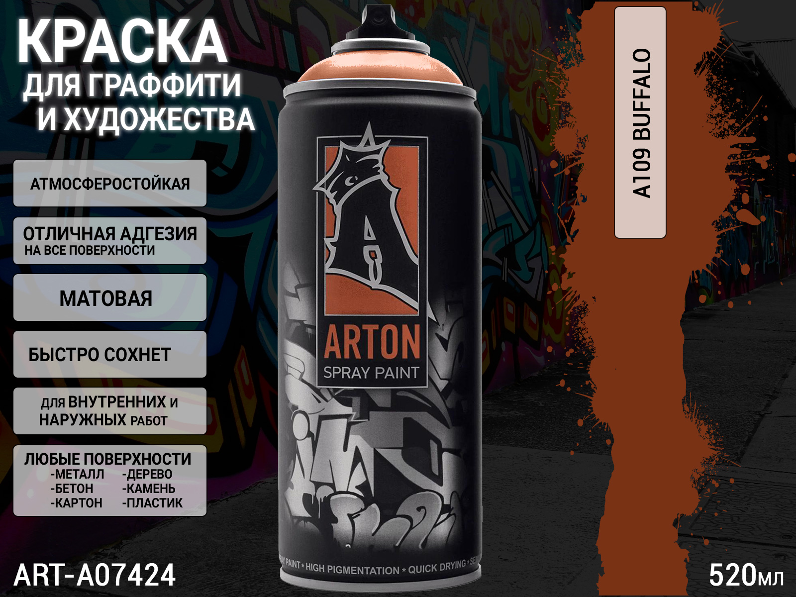1. A109 буйвол/BUFFALO краска для граффити аэрозоль ARTON (520мл)1