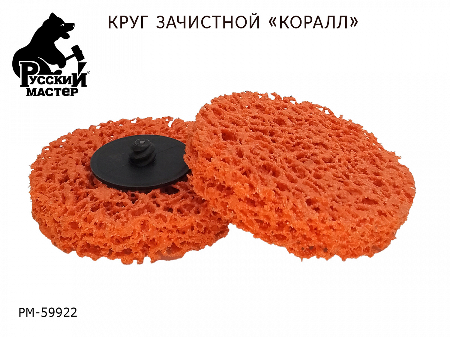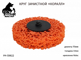 Круг для снятия ржавчины РУССКИЙ МАСТЕР (PM-59922) изготовлен из объёмные синтетических волокон с напылением абразива.