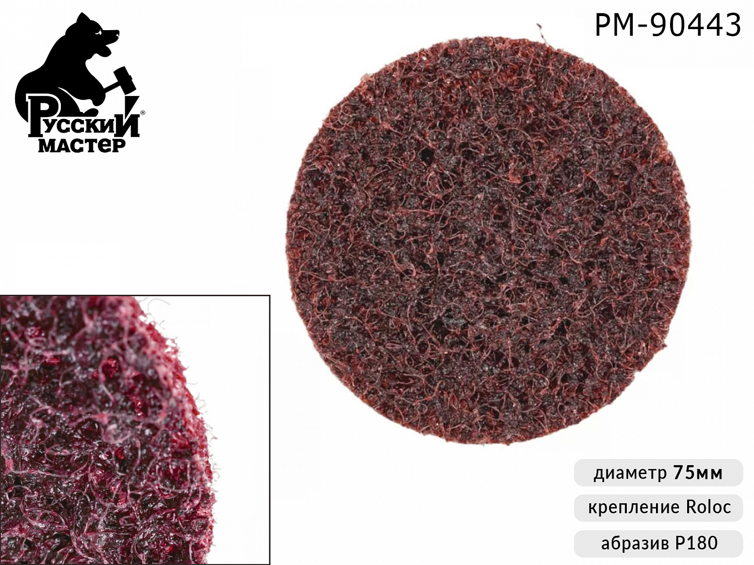 Диск зачистной Р180 диаметр 75мм красный (крепление Roloc) РУССКИЙ МАСТЕР