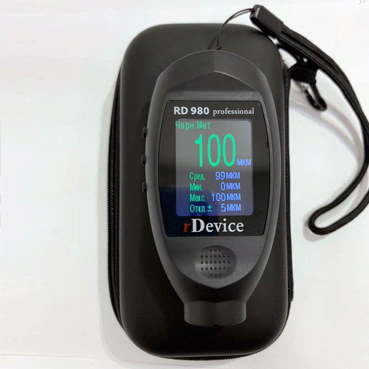 Толщиномер ЛКМ RD980 Professional все металлы, детектор валют, LED-фонарик, цветной дисплей, самокалибрующийся RDEVICE (в кейсе)